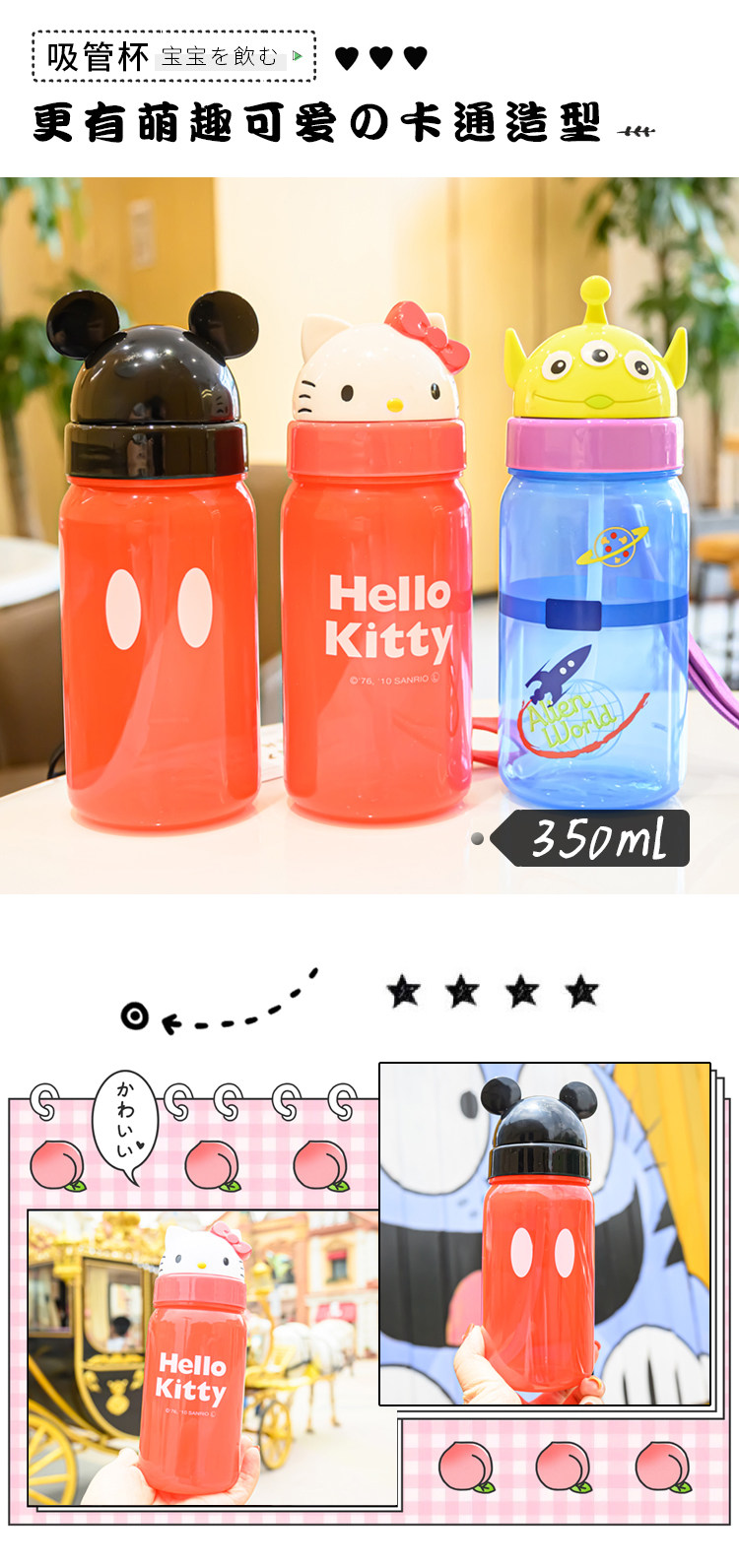 Дисней, японский детский мультяшный портативный стакан со стаканом для детского сада, 350 мл