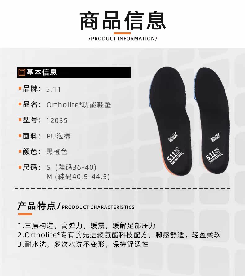 US 5.11 Наружные боевые ботинки, настроенные с высоким содержанием поглощающих стельки 12035 бактерий дезодорирующий ортолит