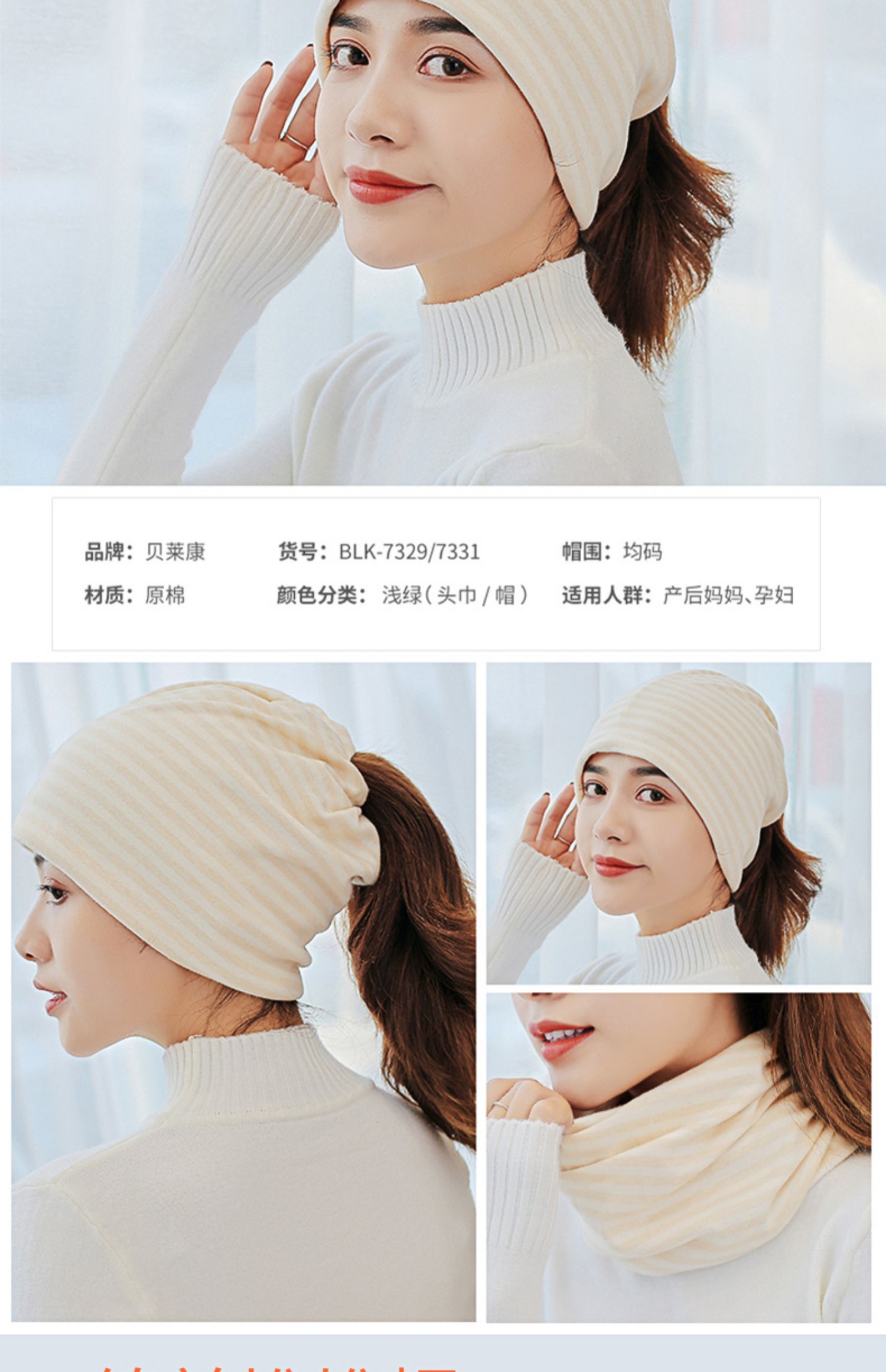 Послеродовая демисезонная хлопковая дышащая шапка для беременных, ветрозащитная повязка на голову