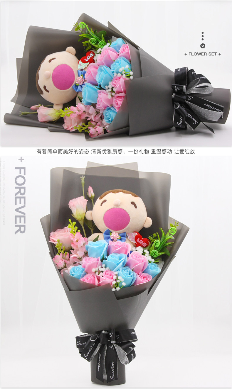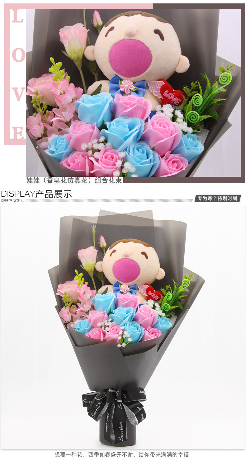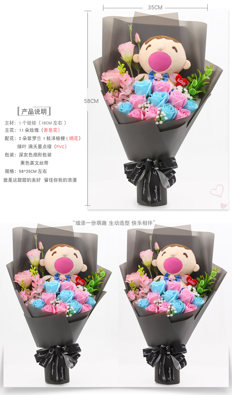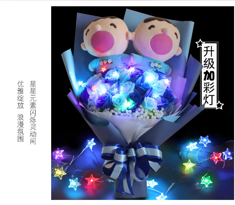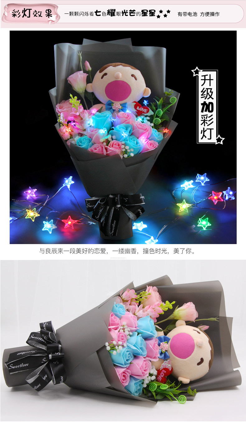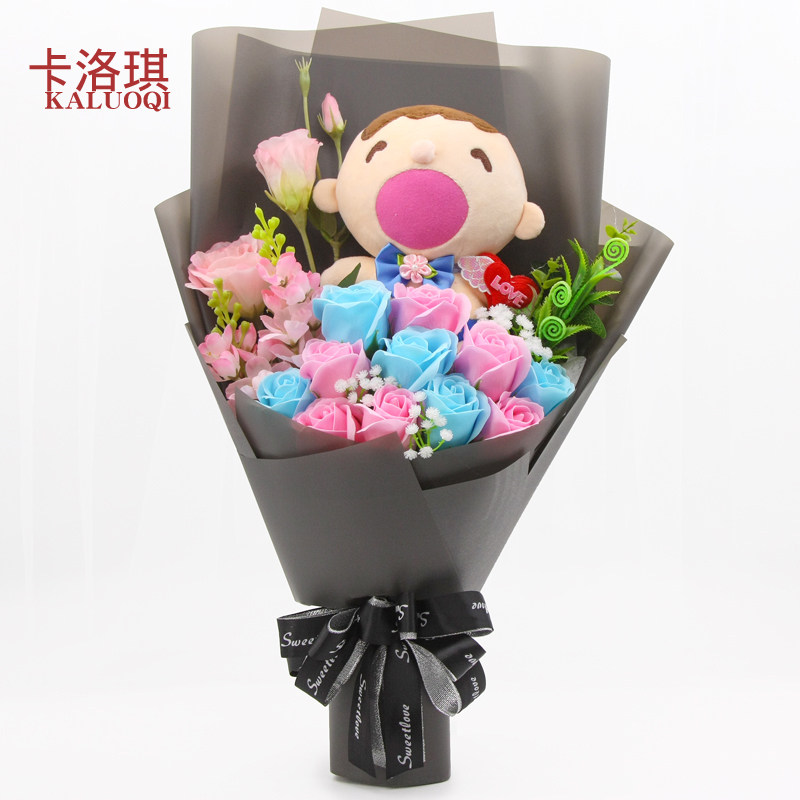 Мультяшное мыло с розой в составе, плюшевая кукла для друга, букет, подарок на день рождения
