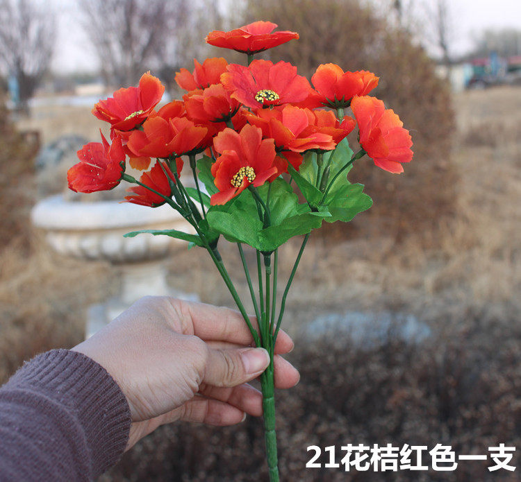 [Материал] Цветы изготовлены из шелковой ткани, а цветочный полюс - пластиковый и проволочный.