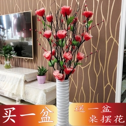 Симуляция цветочной гостиной. Размещение цветов Новые домашние телевизионные шкафы приземляются фальшивые цветы красные фрукты.