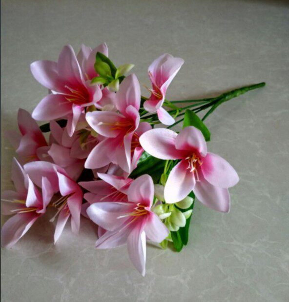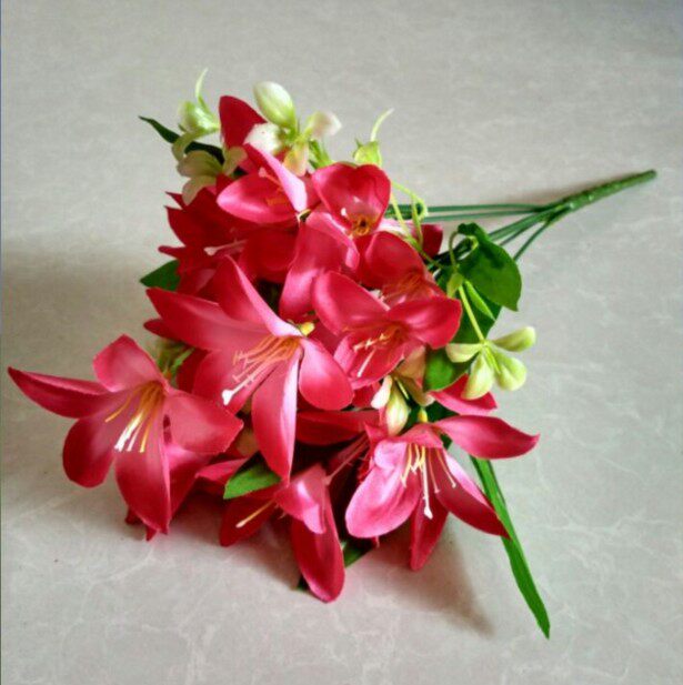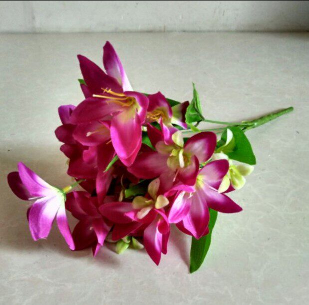 Новая однопроизвольная лилия подделка с фальшивым цветочным моделированием цветочный пакет шелк цветочный цветочный цветок высушенное цветочное искусство