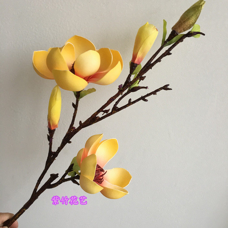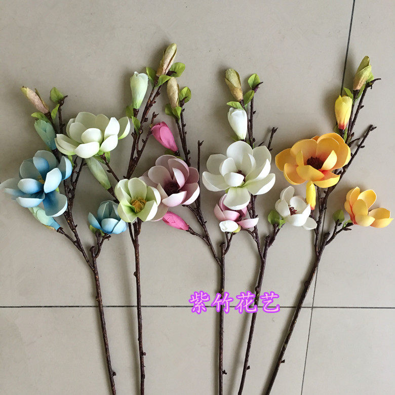 Высококачественная моделируемая модельная комната для кофейного столика Почувствует одиночную ветвь белый желтый красные голубые голубые голубые цветочные ветви магнолия капок