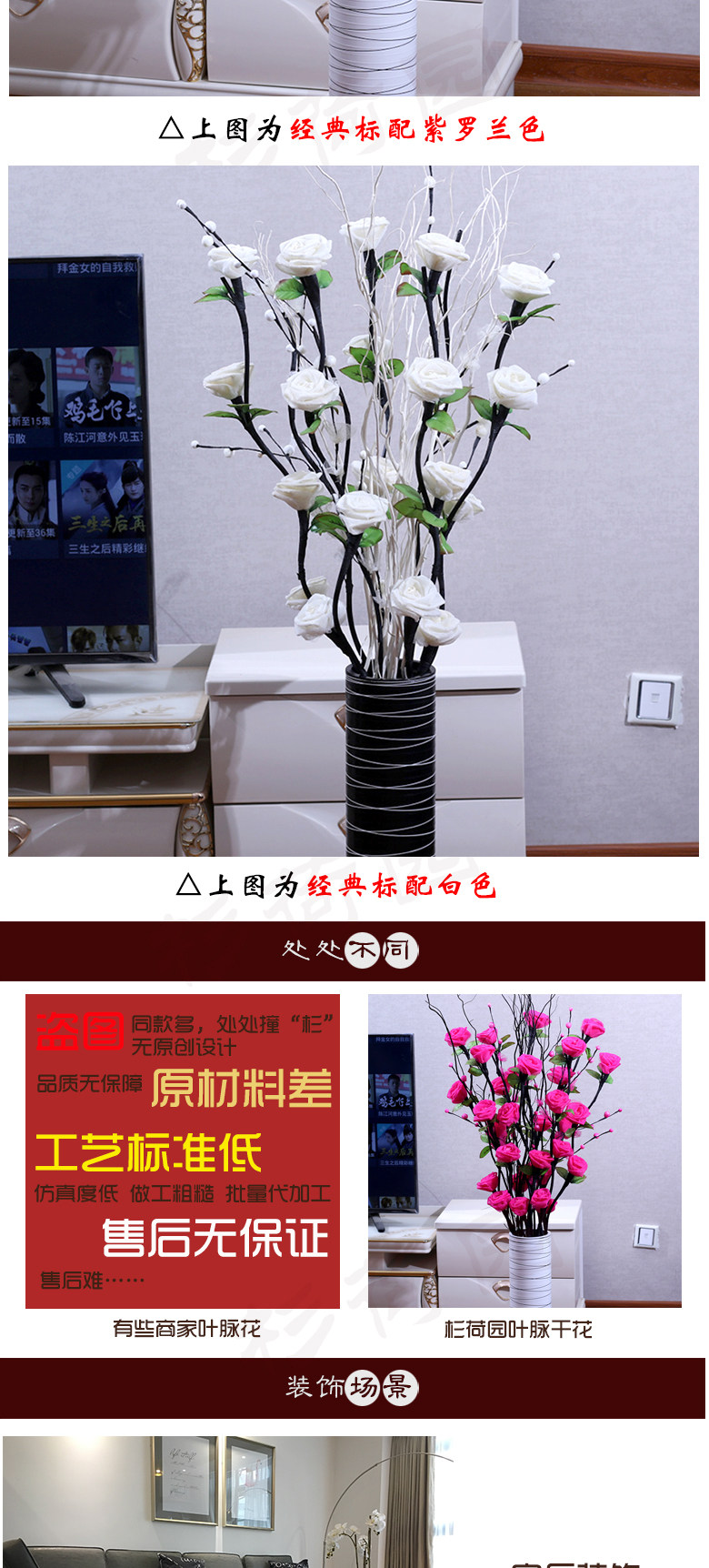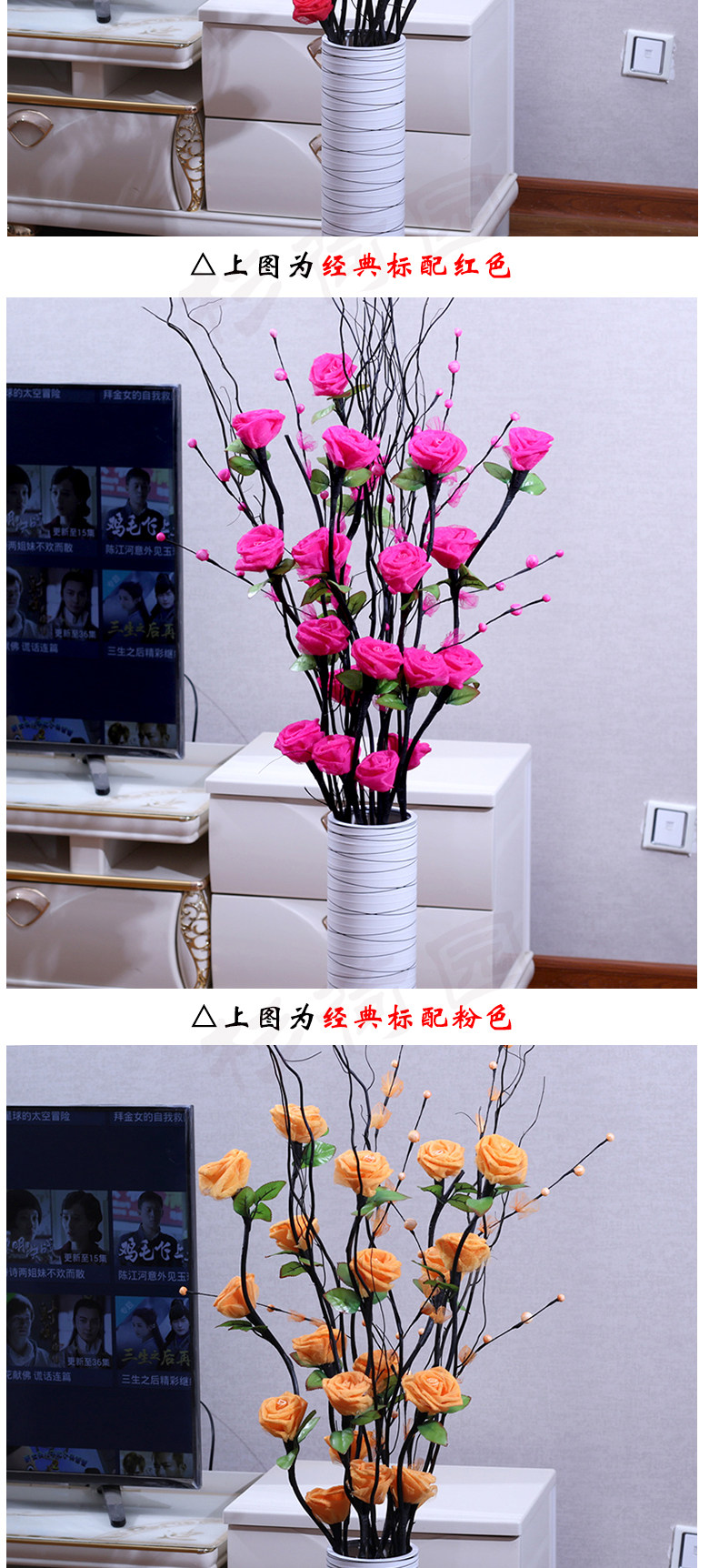 Высоко -симуляционная цветочная гостиная приземляется фальшивые цветочные вены сухие цветы Новый дом, свадебная комната, Движение жилья, декоративное смешанное розовое цветочное расположение