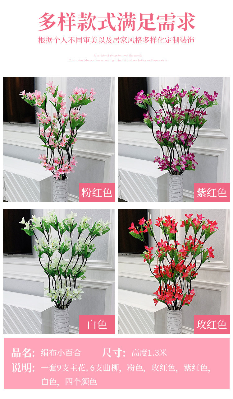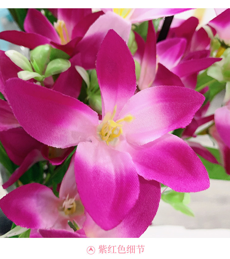 - 3 розово-красные лилии + 3 розово-красных цветка сливы
