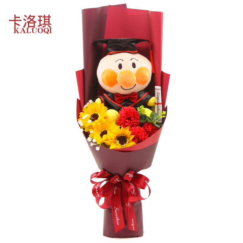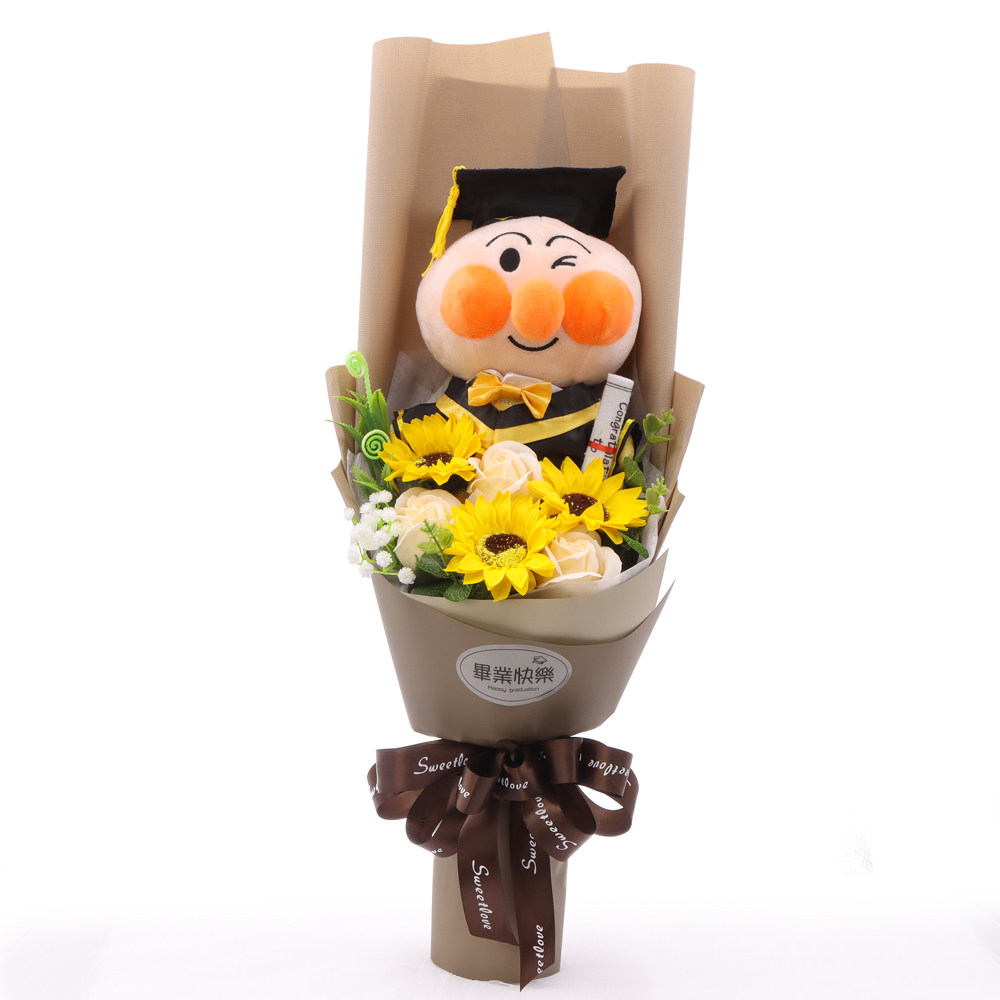 Мультяшная кукла, мыло с экстрактом подсолнечника с розой в составе для друга, букет, с медвежатами, подарок на день рождения