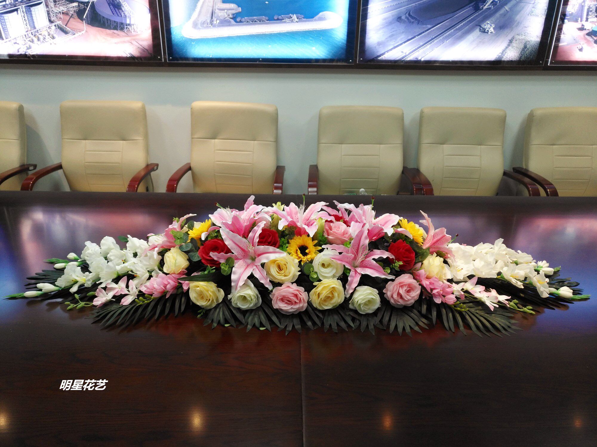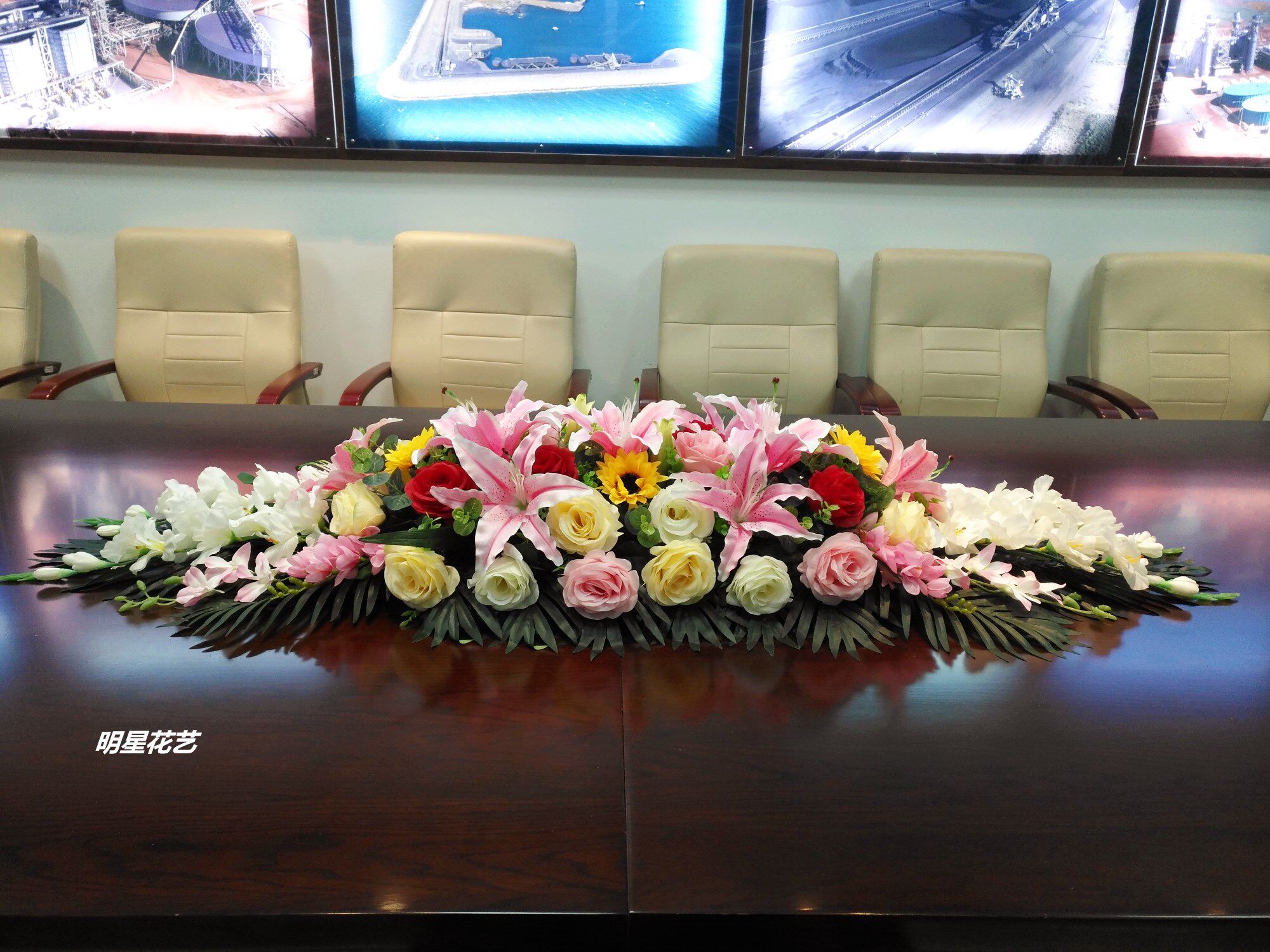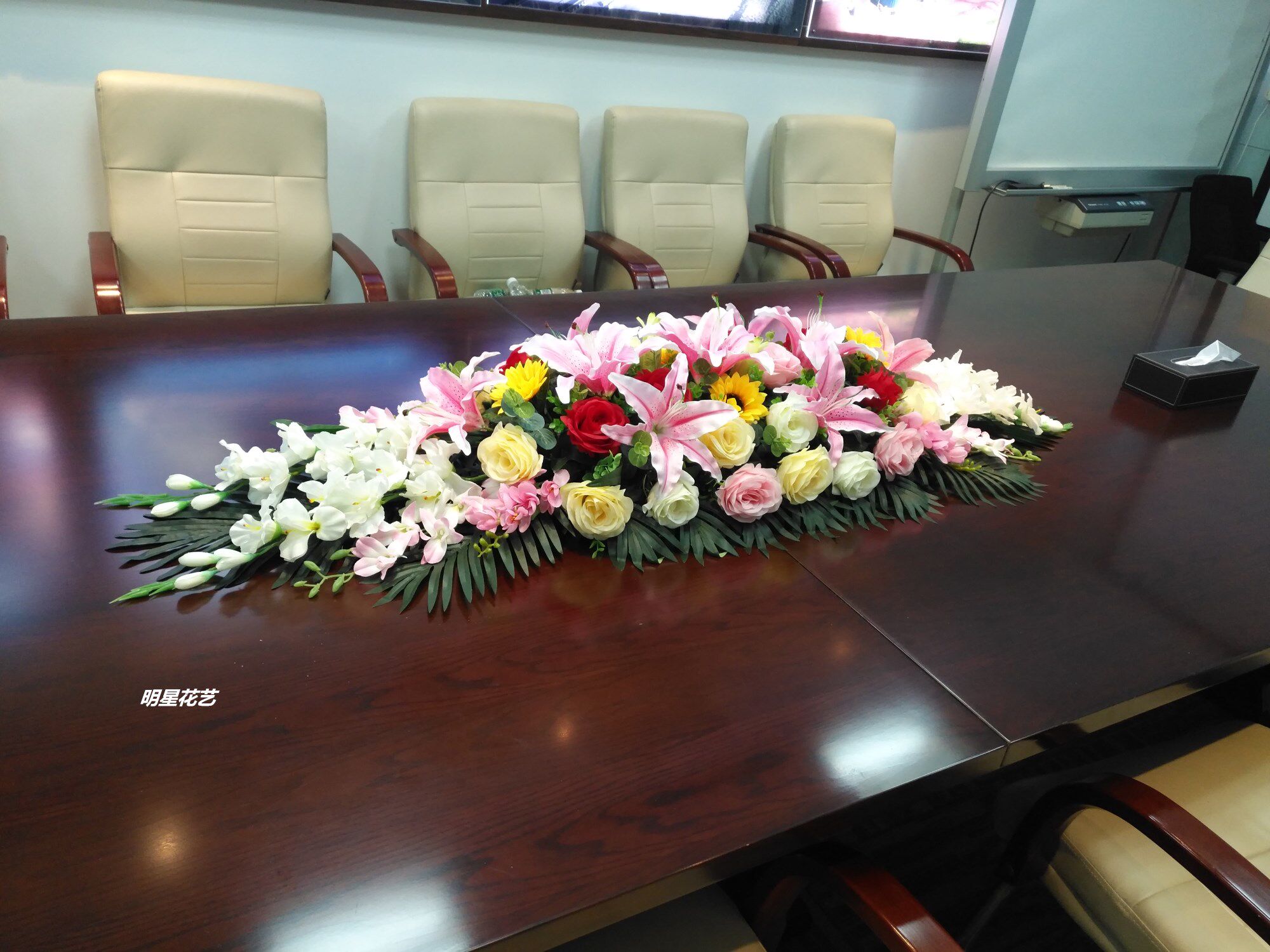 Симуляция длинная конференц -стол цветок шелк отель ресторан на стойке регистрации аудитория Specker Flower Pecijing стол цветок бесплатная доставка