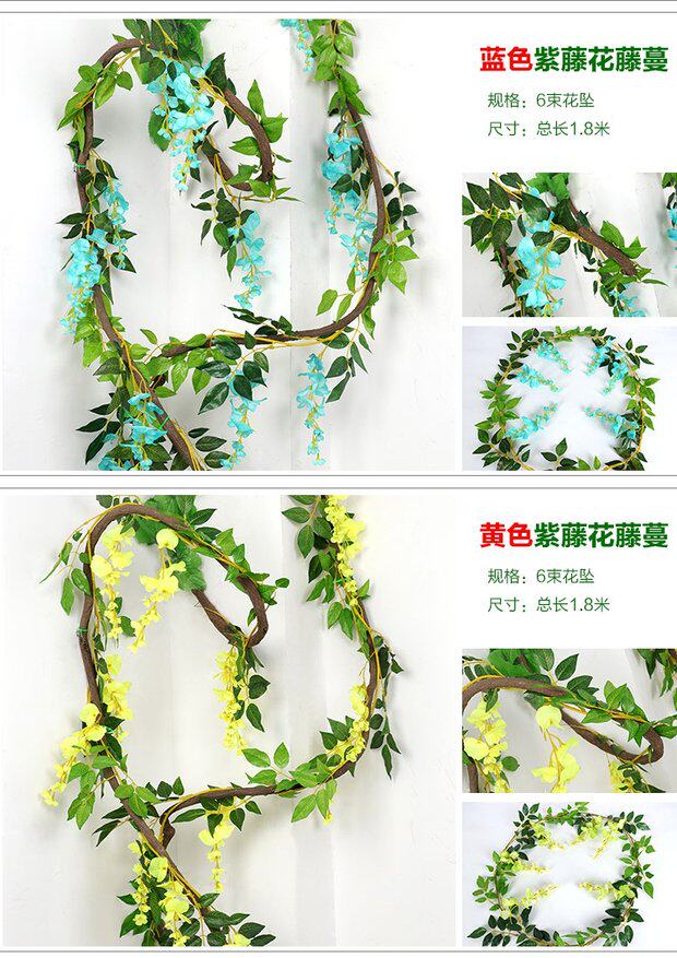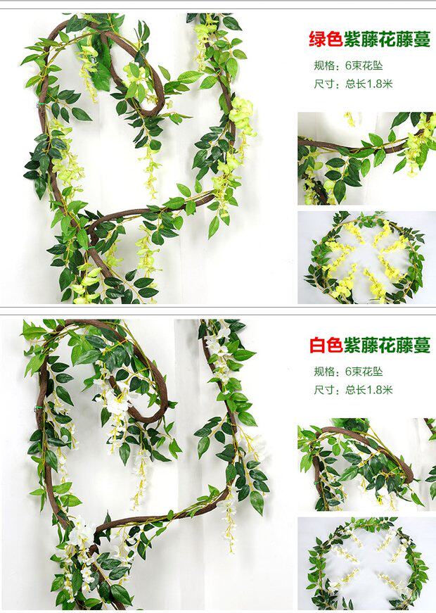 Симуляция глицинии, батончики, зеленые листовые виноградные батончики поддельные цветочные свадебные арки, виноградные лозы, винограды