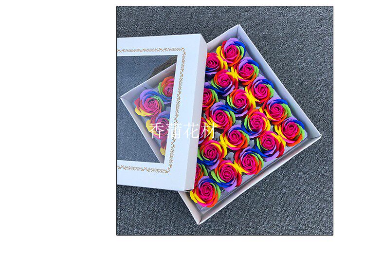 Радужное мыло на день Святого Валентина с розой в составе, подарочная коробка, подарок на день рождения