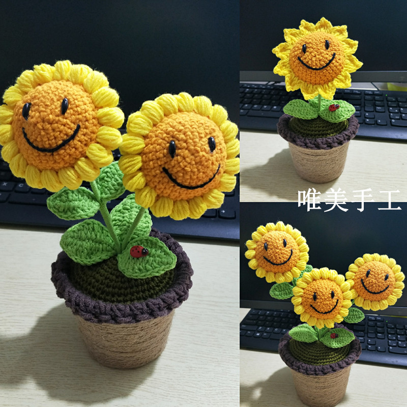 Название продукта: Чистая рука.Шерсть из готовых изделия для горшка для подсолнечника, моделирование солнечного цветочного горшка готовые изделия