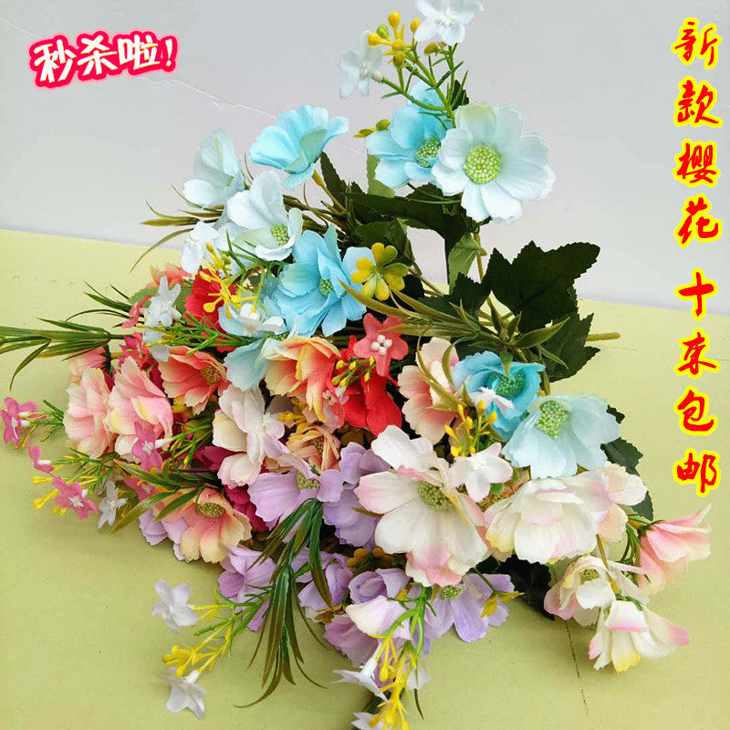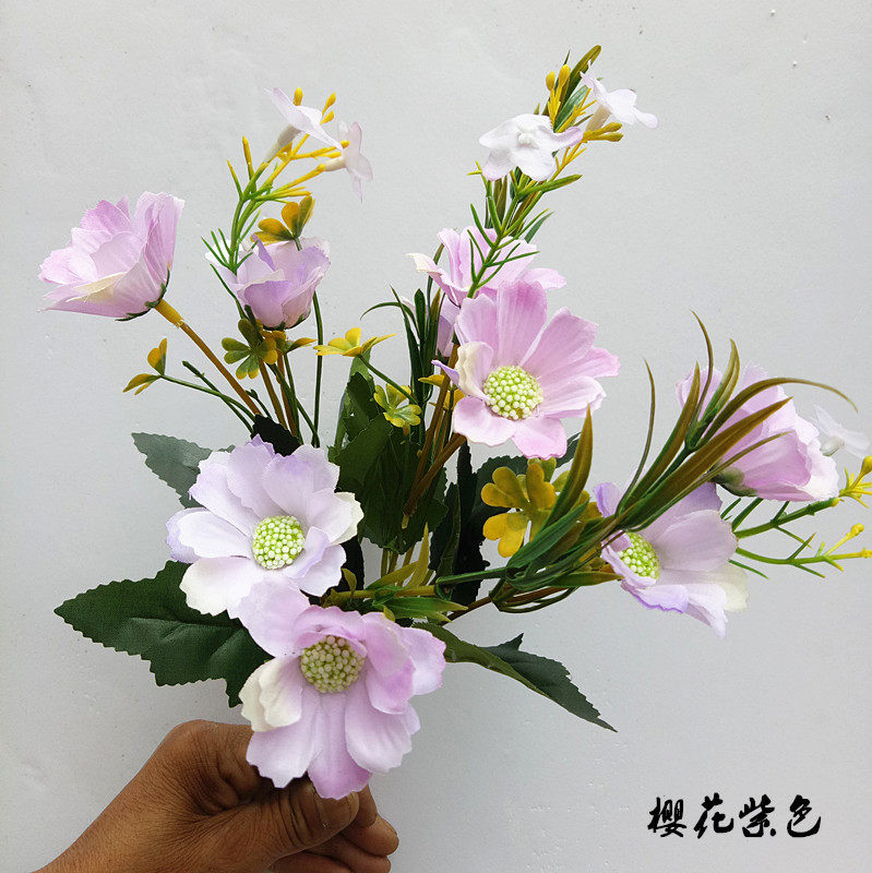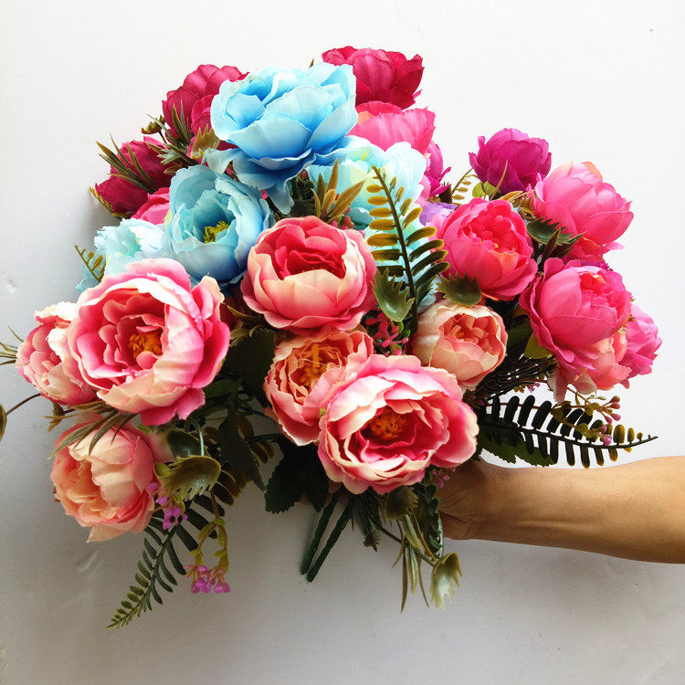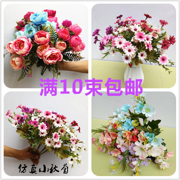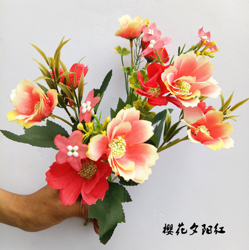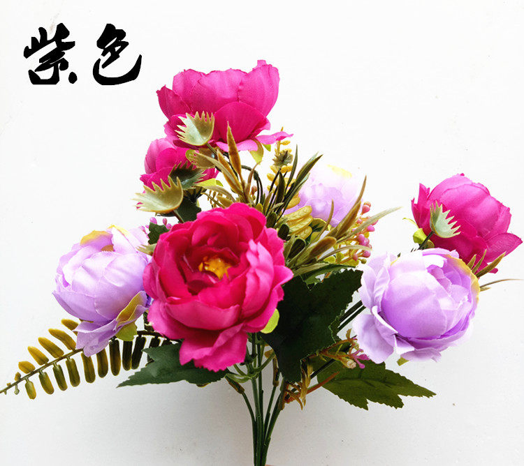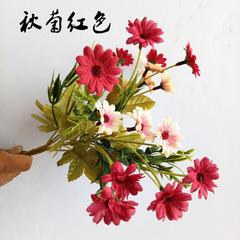 Симуляция 7 -Удовлетворенные осенние пиони букет европейский стиль хризантема весенний гора хризантема пластиковый цветочный цветочный цвет вишне