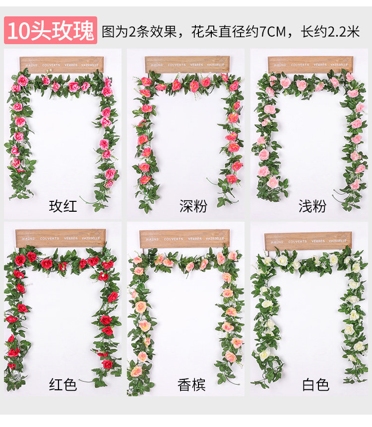 Имитация роз, искусственные цветы, виноградные лозы, настенные ковры, намоточные водопроводные трубы для кондиционирования воздуха, блокировка и украшение потолка гостиной пластиковыми растениями