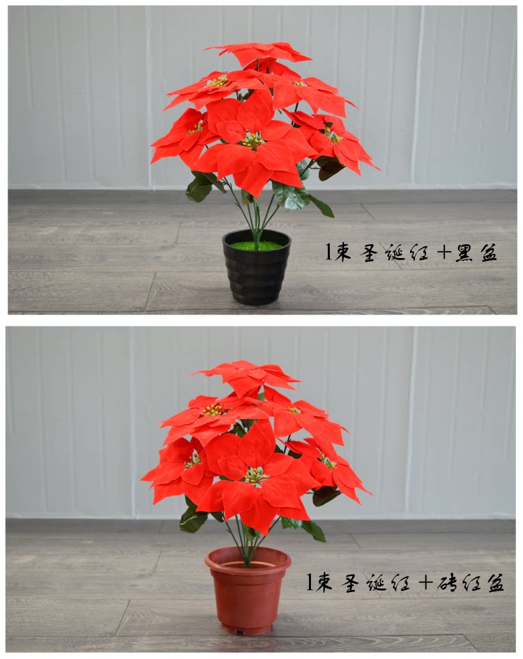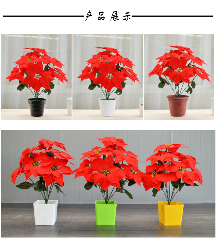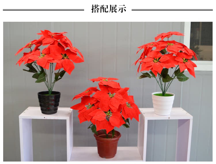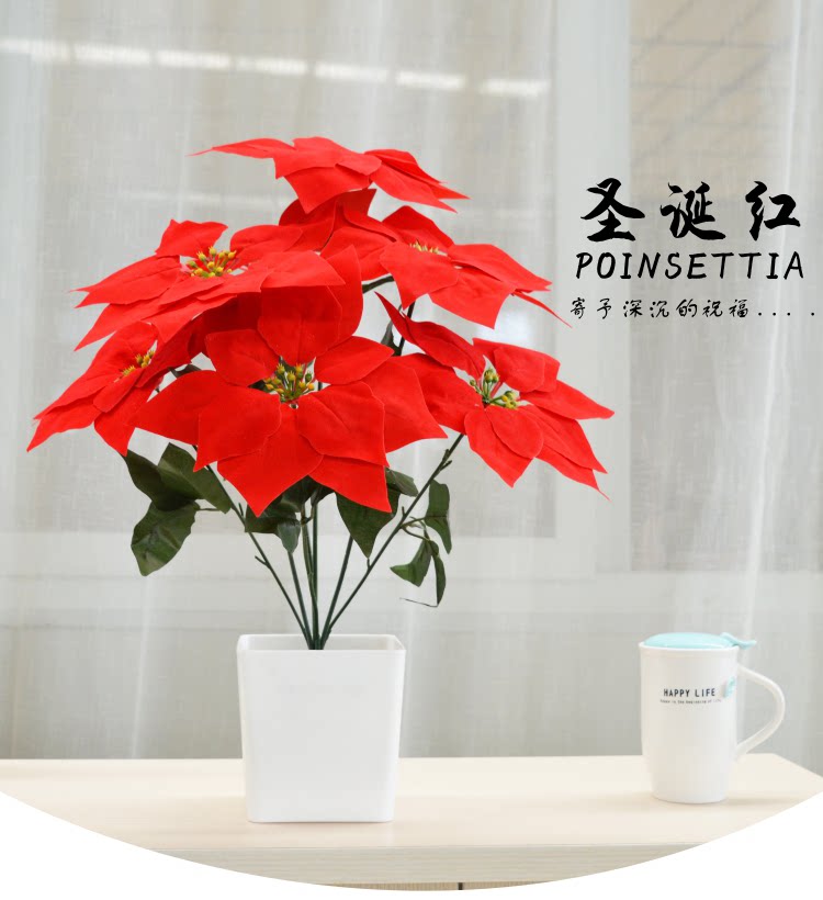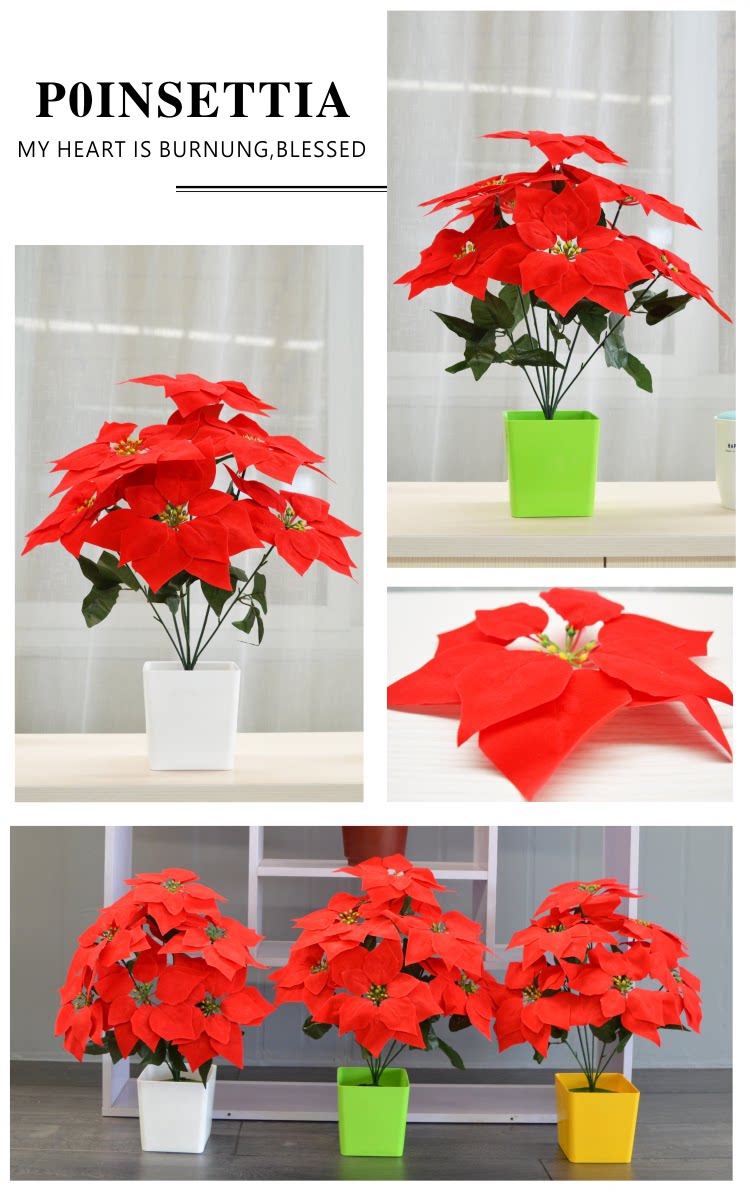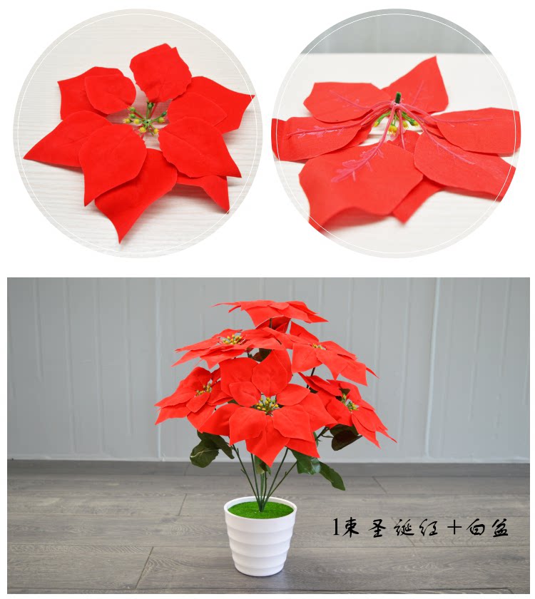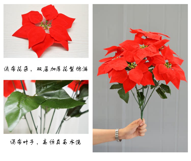 Симуляция yipin красная бархатная ткань Рождество красные цветы 7 головы фальшивых цветов Празднование