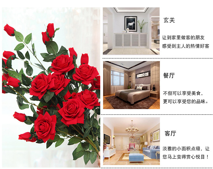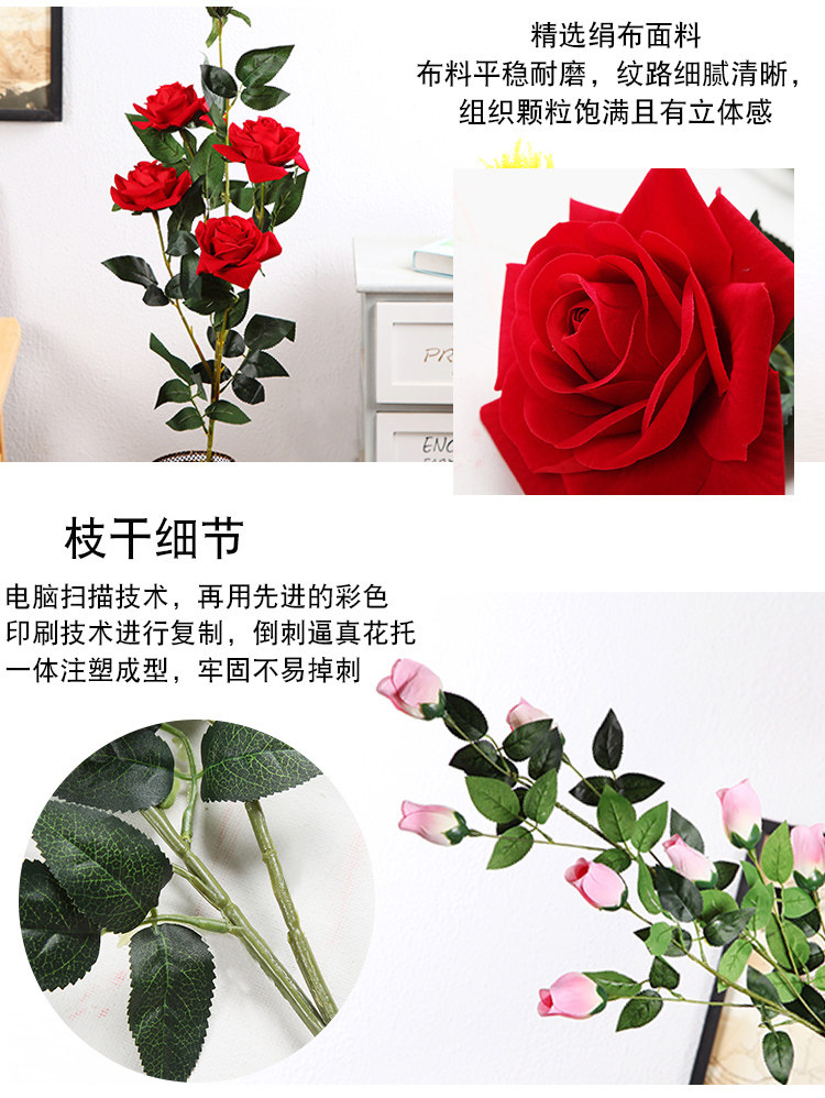 Симуляция приземления Big Rose 5 головы с высоким ядрам -фальшивой цветочной гостиной телевизионный шкаф Новый дом положил декоративное украшение шелковые цветы