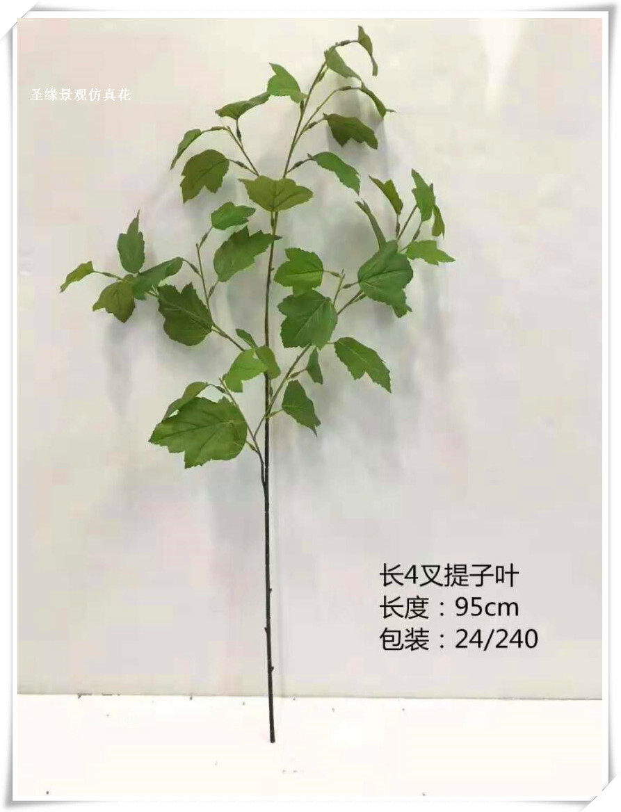 Смоделируемые 4-разветвленные листья, искусственное дерево среза с листьями, фальшивое растение, лист, декоративное дерево ресторана с листьями