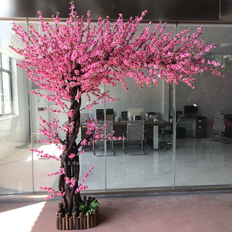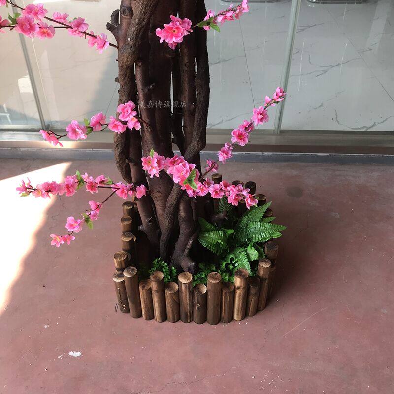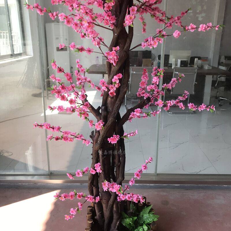 Детский материал; Персиковые цветы - это шелковая ткань, а стволы деревьев - это природные столбы деревьев