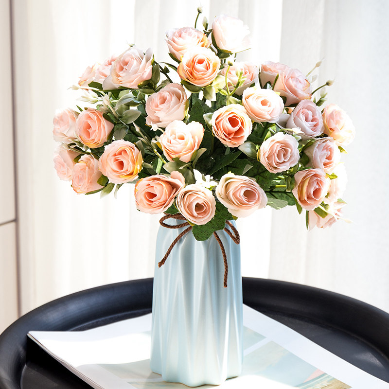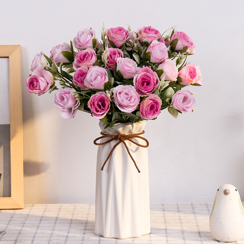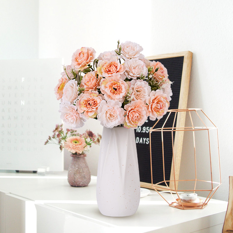 Поддельные цветы смоделировать цветы гостиная украшения украшения розовая пластиковая керамическая банка ваза