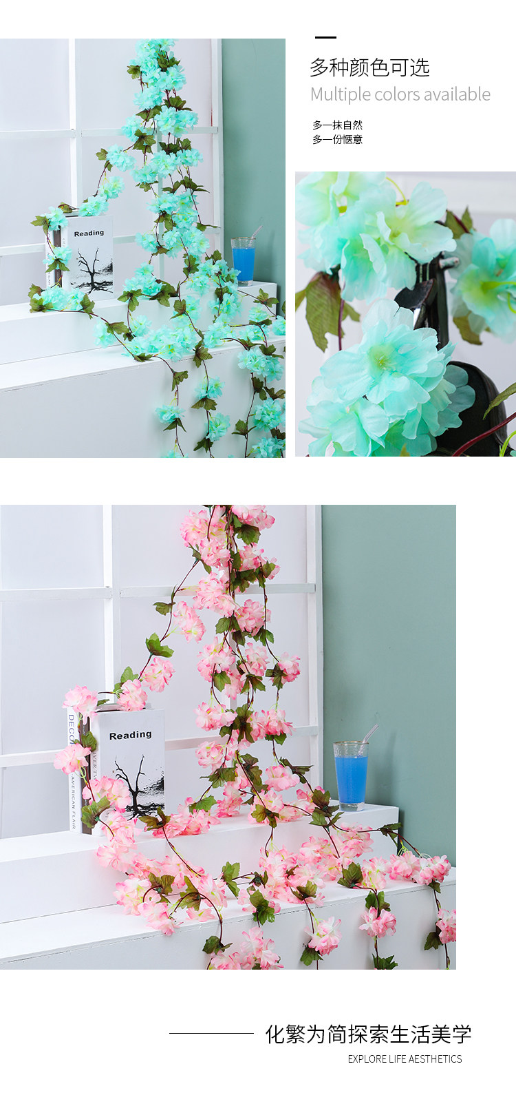 Симуляция вишневого цветов ветви в помещении гостиной воздушная комната -кондиционирование труб.