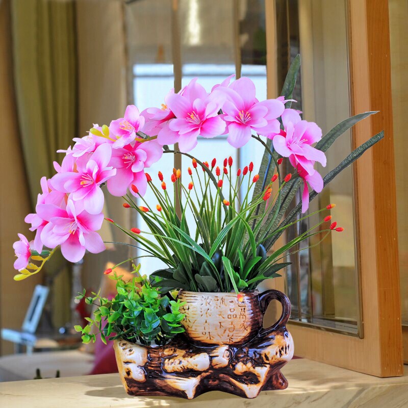 Phalaenopsis Simulation Flower Set Ceramic Pot Living Room Room Столовый стол