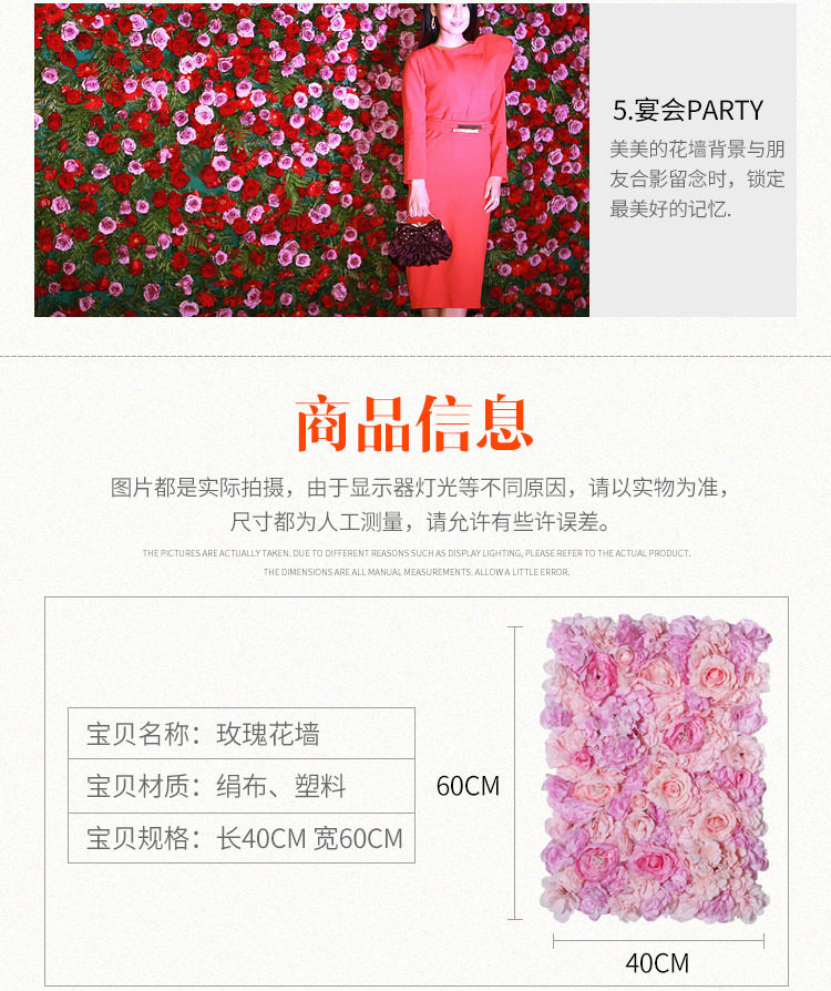 Симуляция цветочная стена розовая эмприрская шарика Фоны Фоны Фоны Свадьба Свадебная шелковая цветочная дорога псевдо -стена -настенная шелковая цветочная сеть красная стена