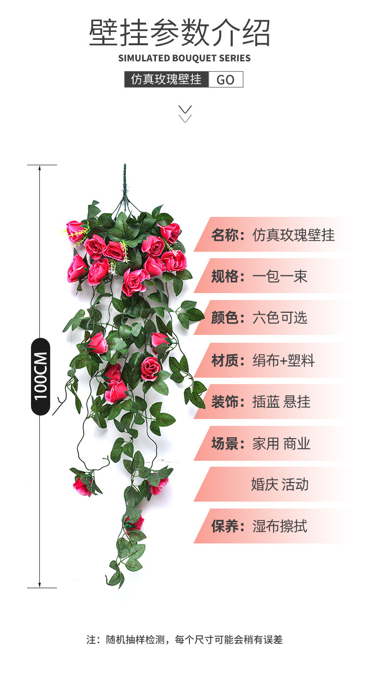 Симуляция розовая настенная настенная стена -Цветочный вешающий