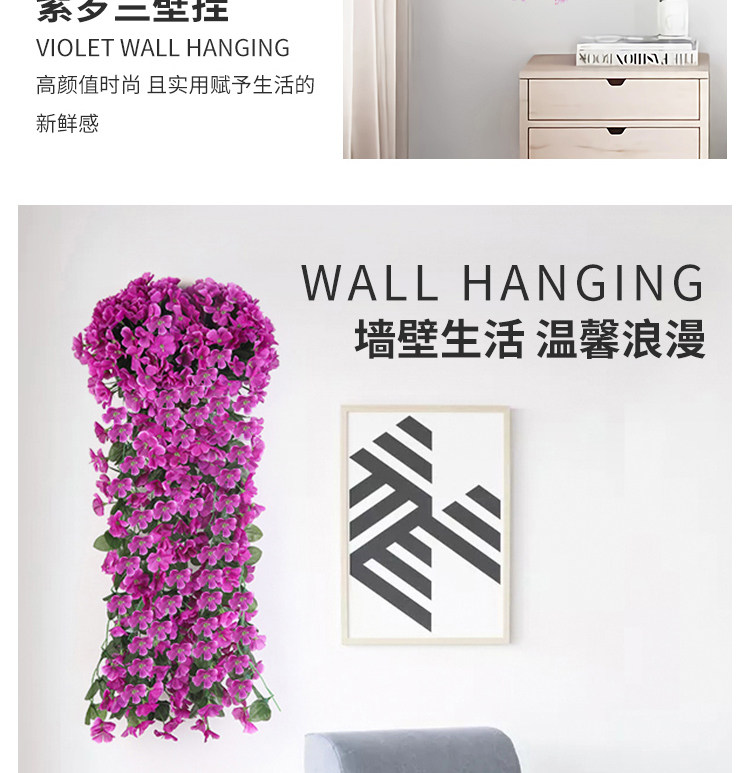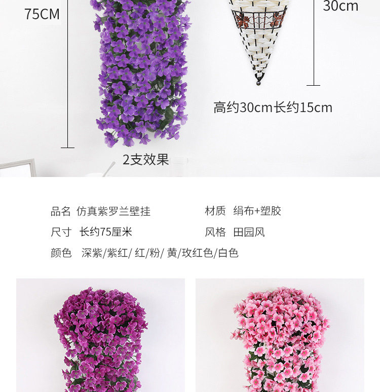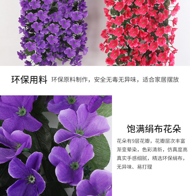 Симуляция фиолетовая ланхуа настенная растение висят на стене орхидеи, висящая пластиковая фальшивая цветочная виноградная лоза.