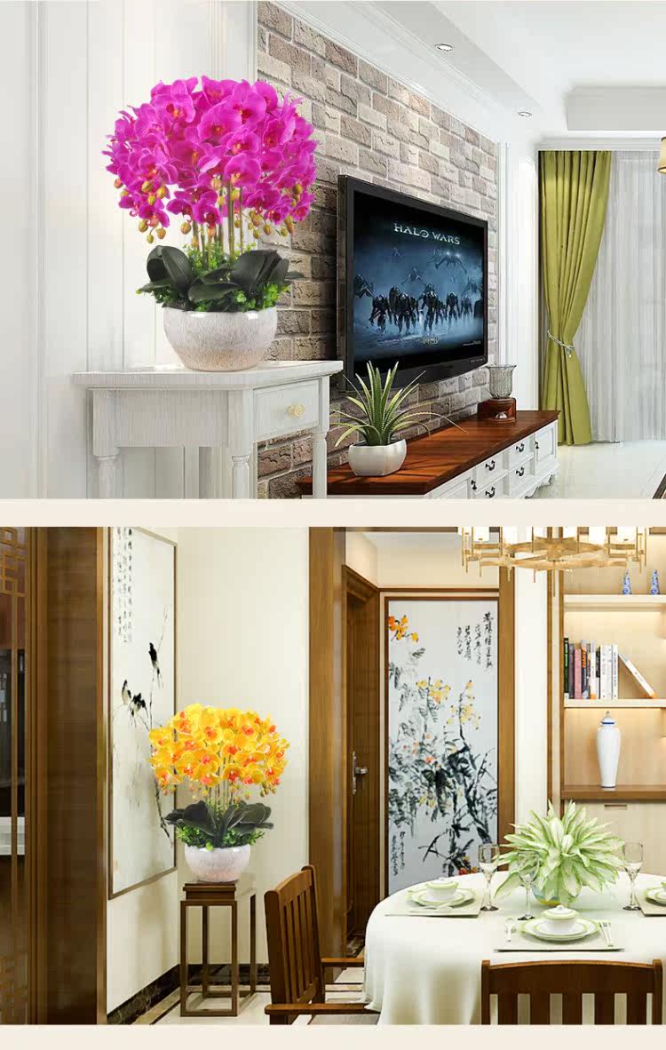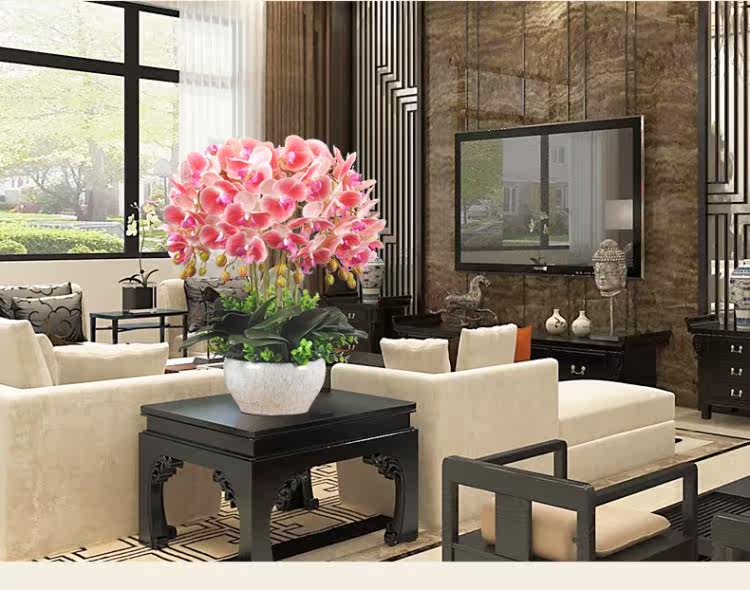 Реалистичные декоративные цветы для гостиной, большой пластиковый цветочный горшок, домашний декор, орхидея