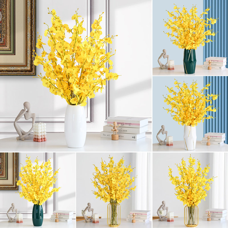 Желтые танцующие реалистичные цветочные композиции для гостиной, декоративные цветы