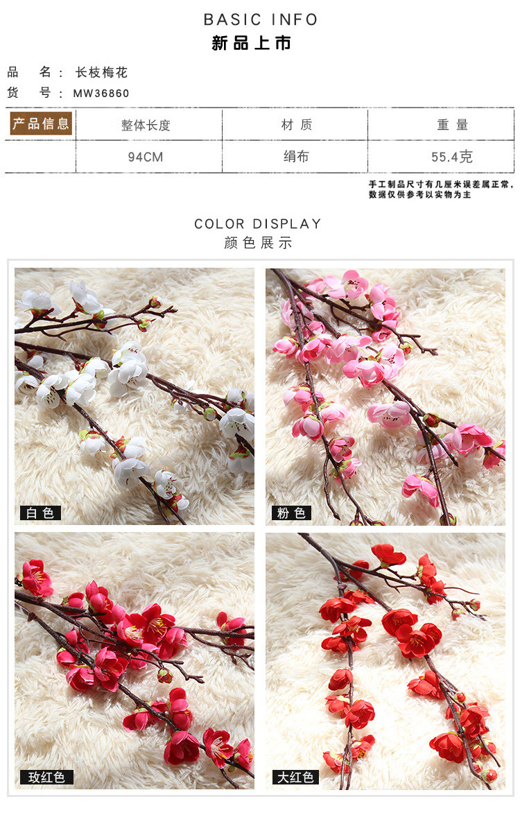 Длина одного имитированного цветка сливы около 57 см.