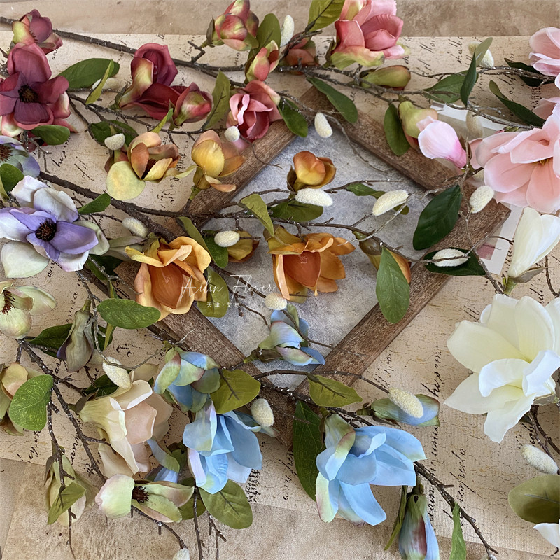 7 Магнолия симуляция цветы Wutan Franches осени внешней торговли -партия декоративной картины маслом ретро многооткрытая орхидея