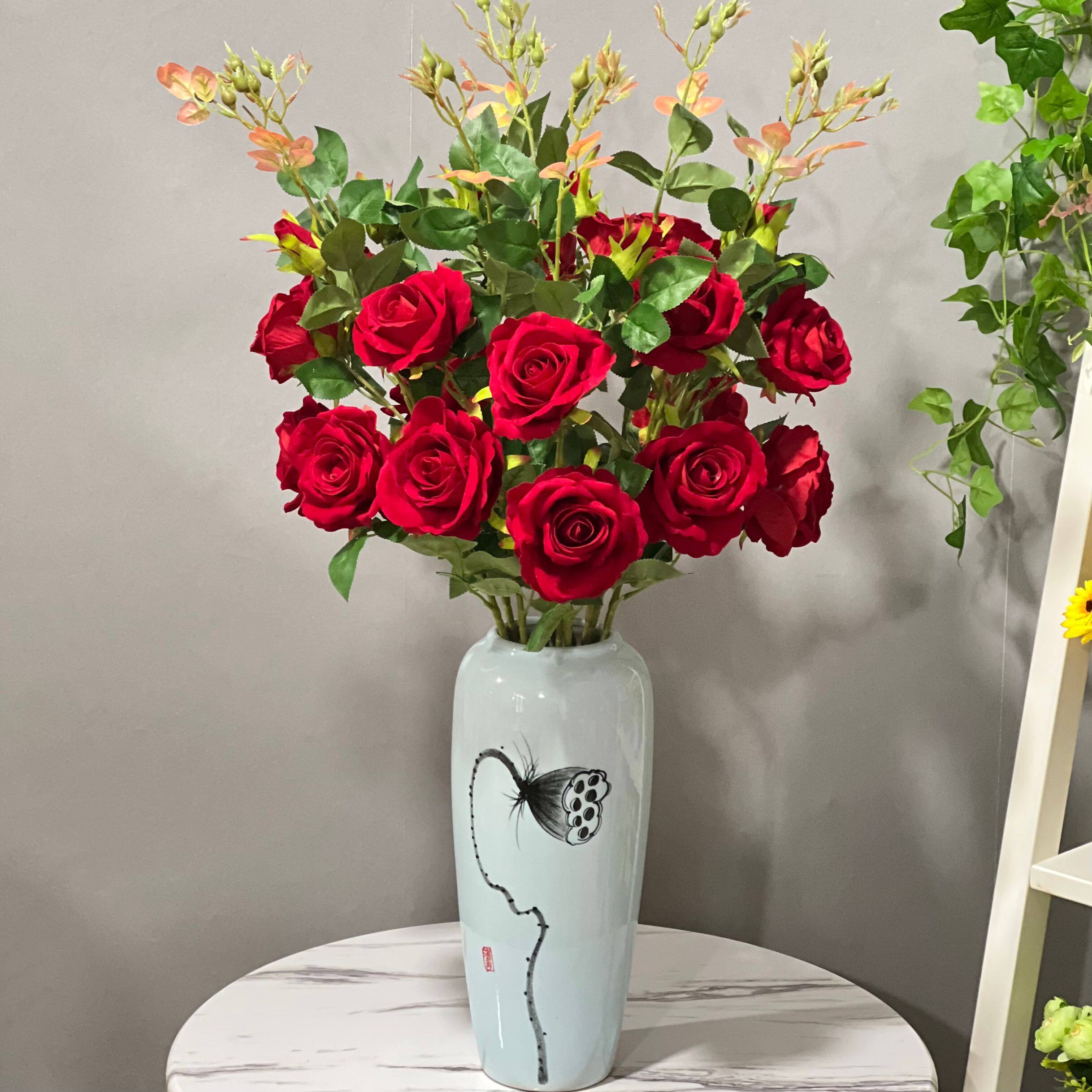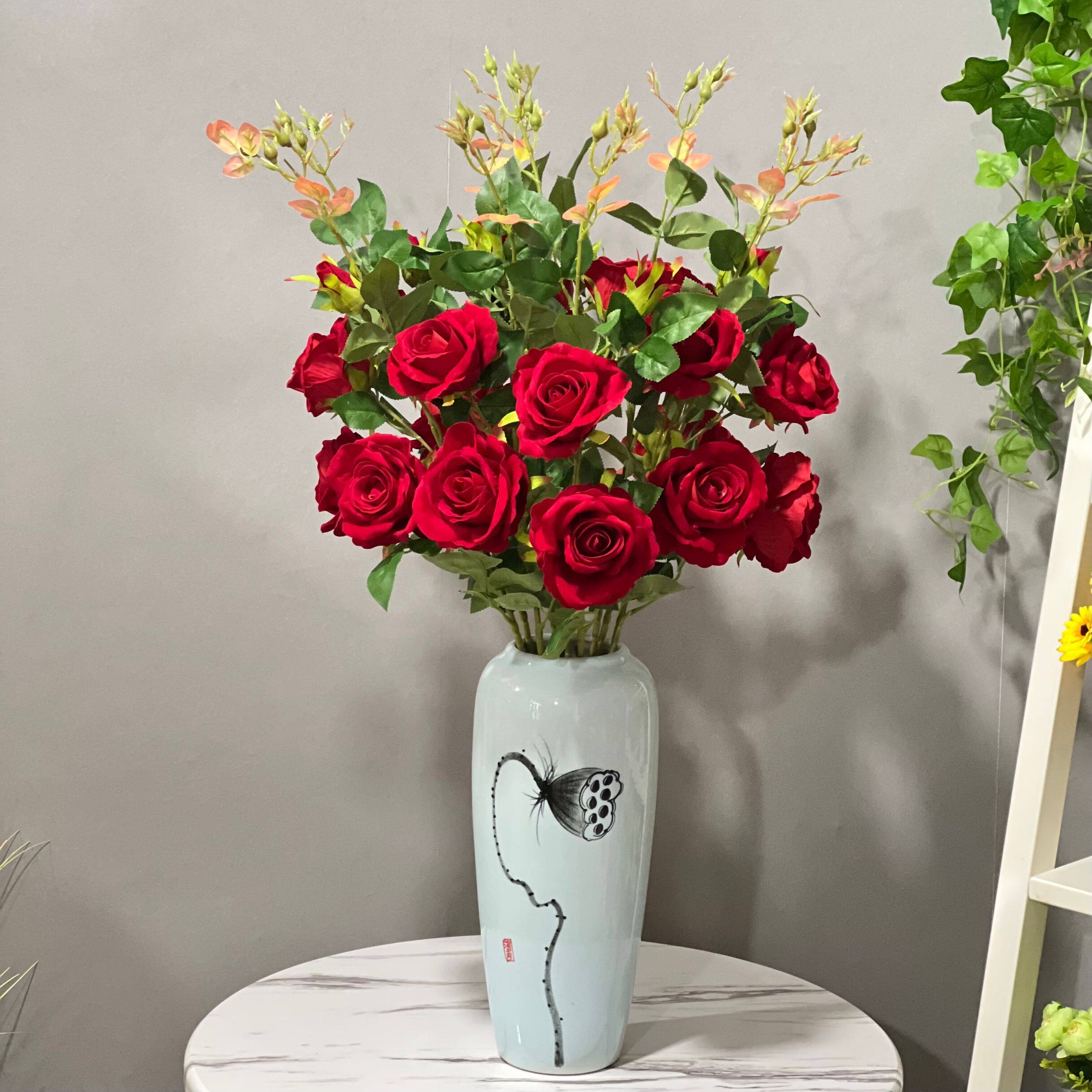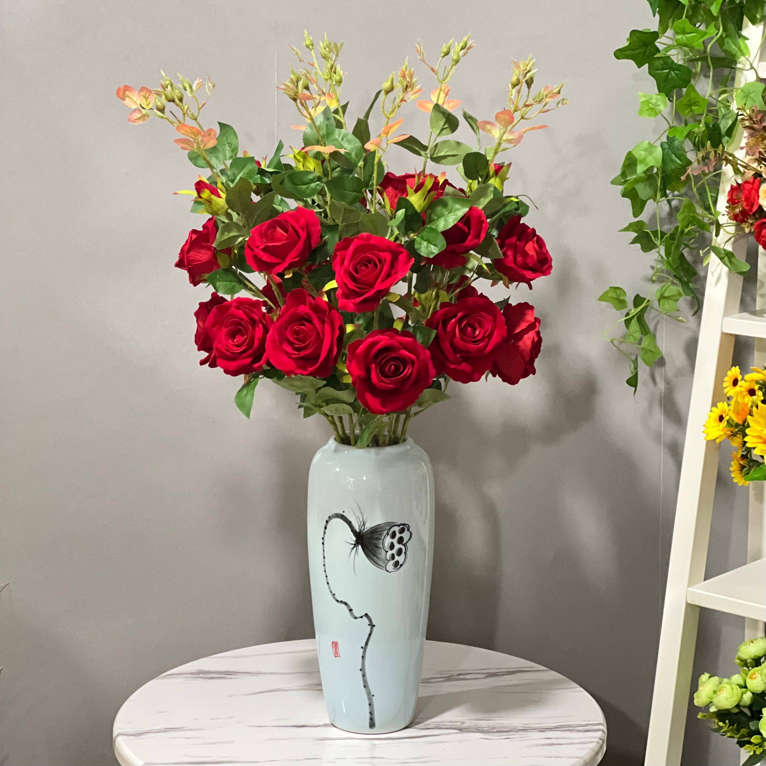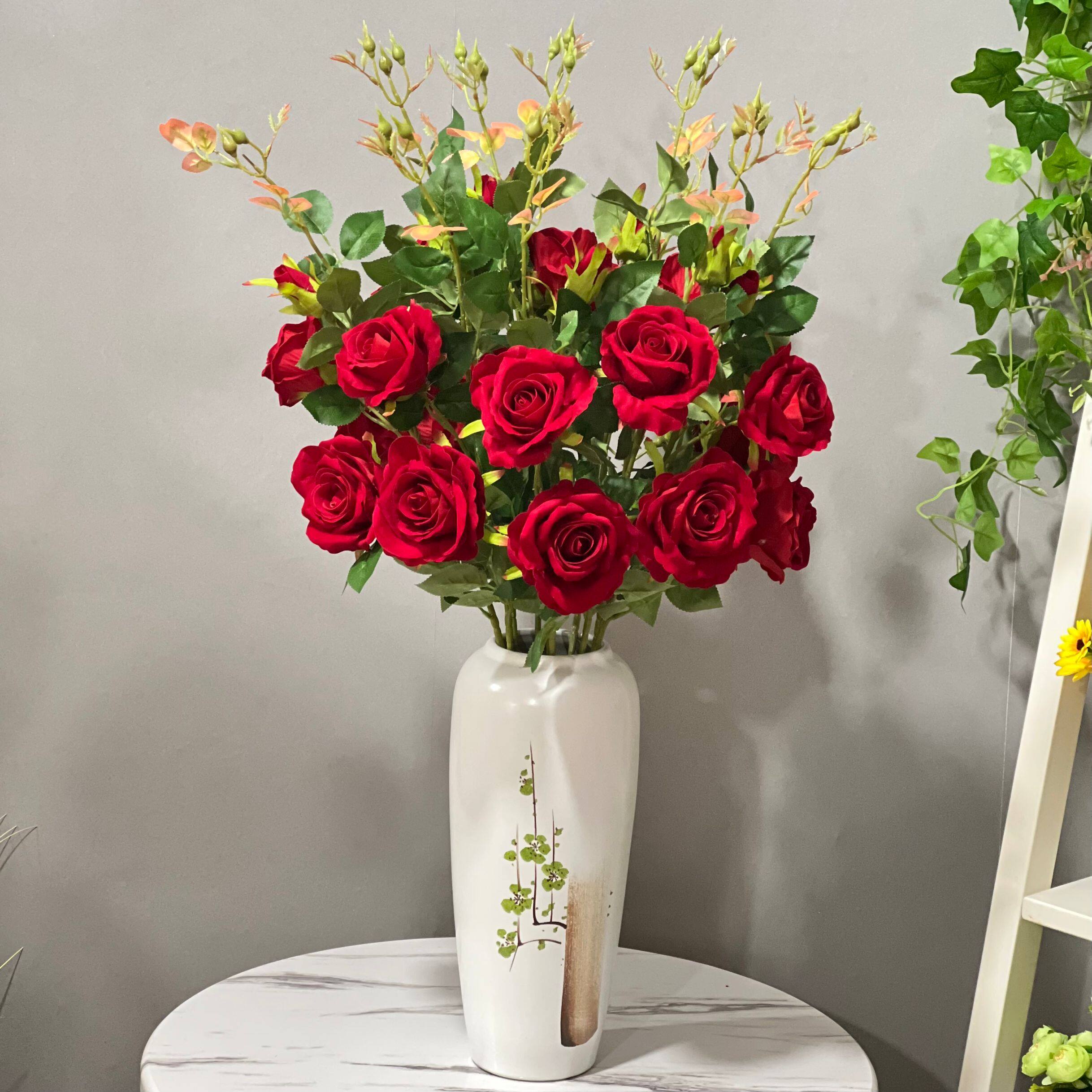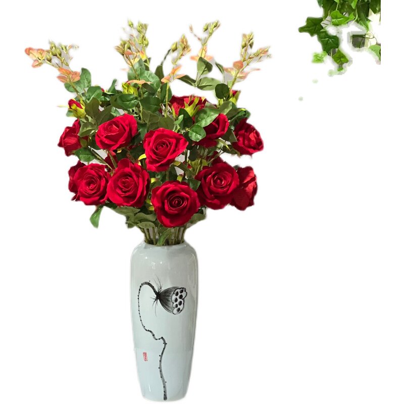 Фальшивая розовая пластиковая бархатная свадебная свадебная плазма Простая цветочная вставка красная отдельная ветвь псевдо -фальтер цвет