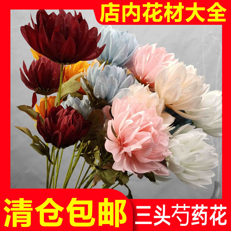 Фабрика прямая продажа трех -голова с пиони -симуляцией цветок свадебный цветок цветочный материал новая шелковая ткань свадеб набор фальшивые шелковые цветы