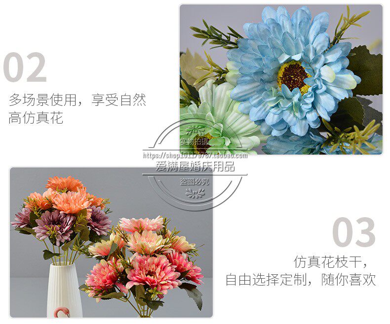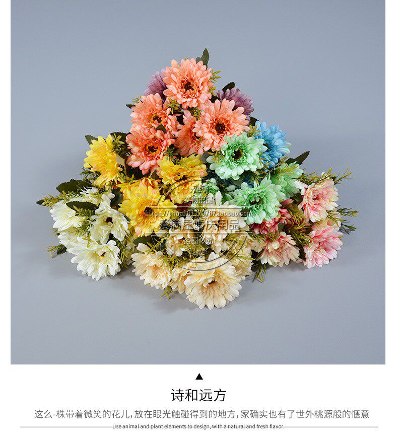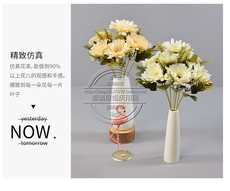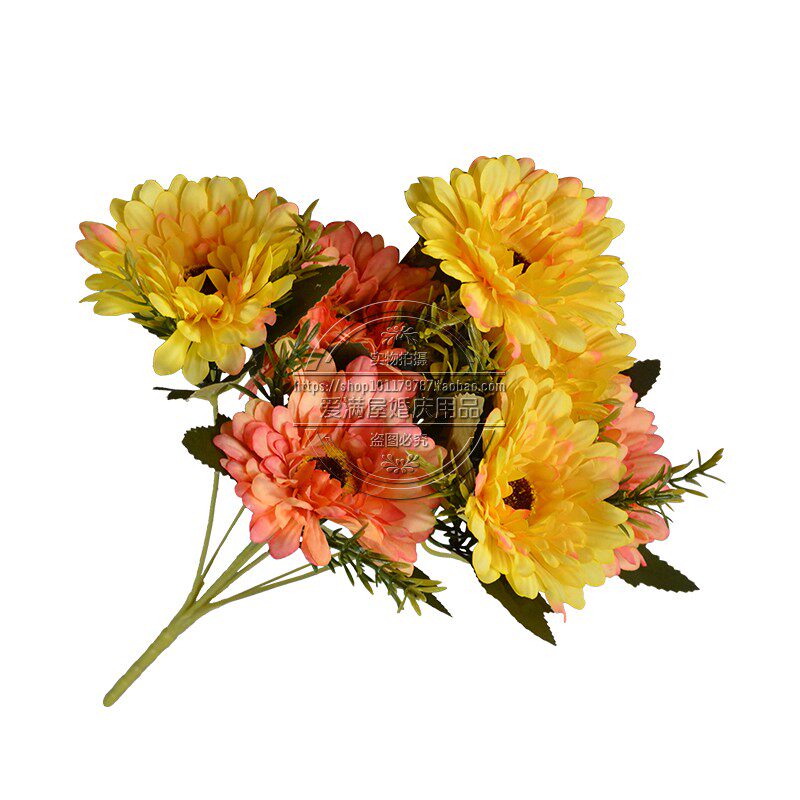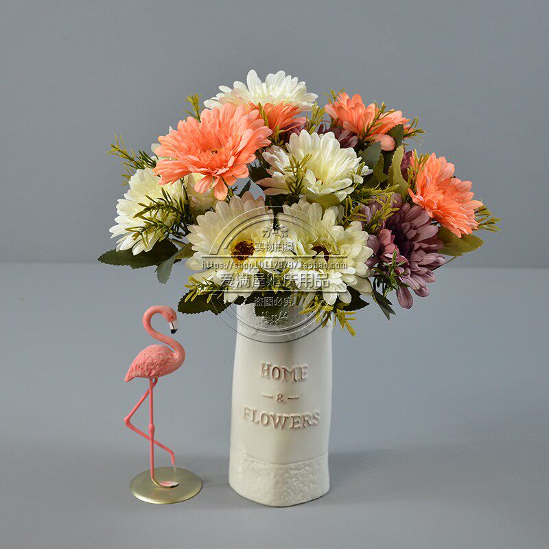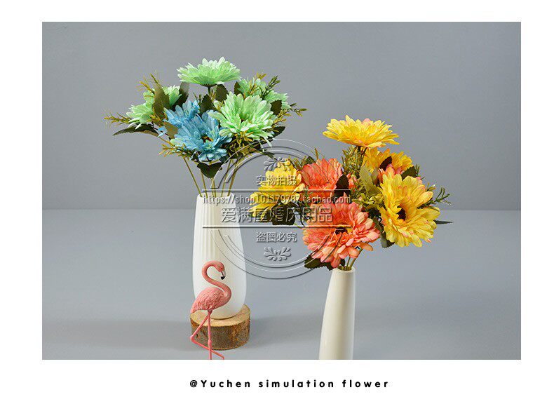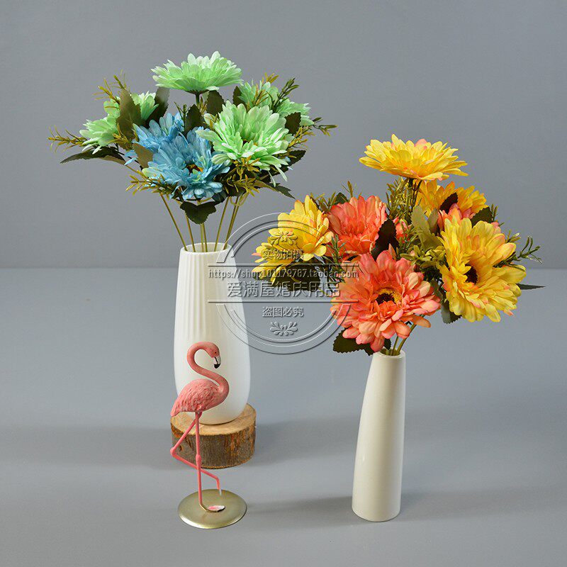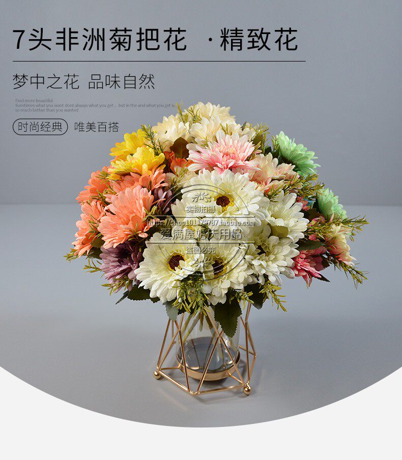 Высокая симуляция 7 голов африканской хризантемы положите кубок фонаря, Furang Chrysanthemum Цветочный украшение отель.