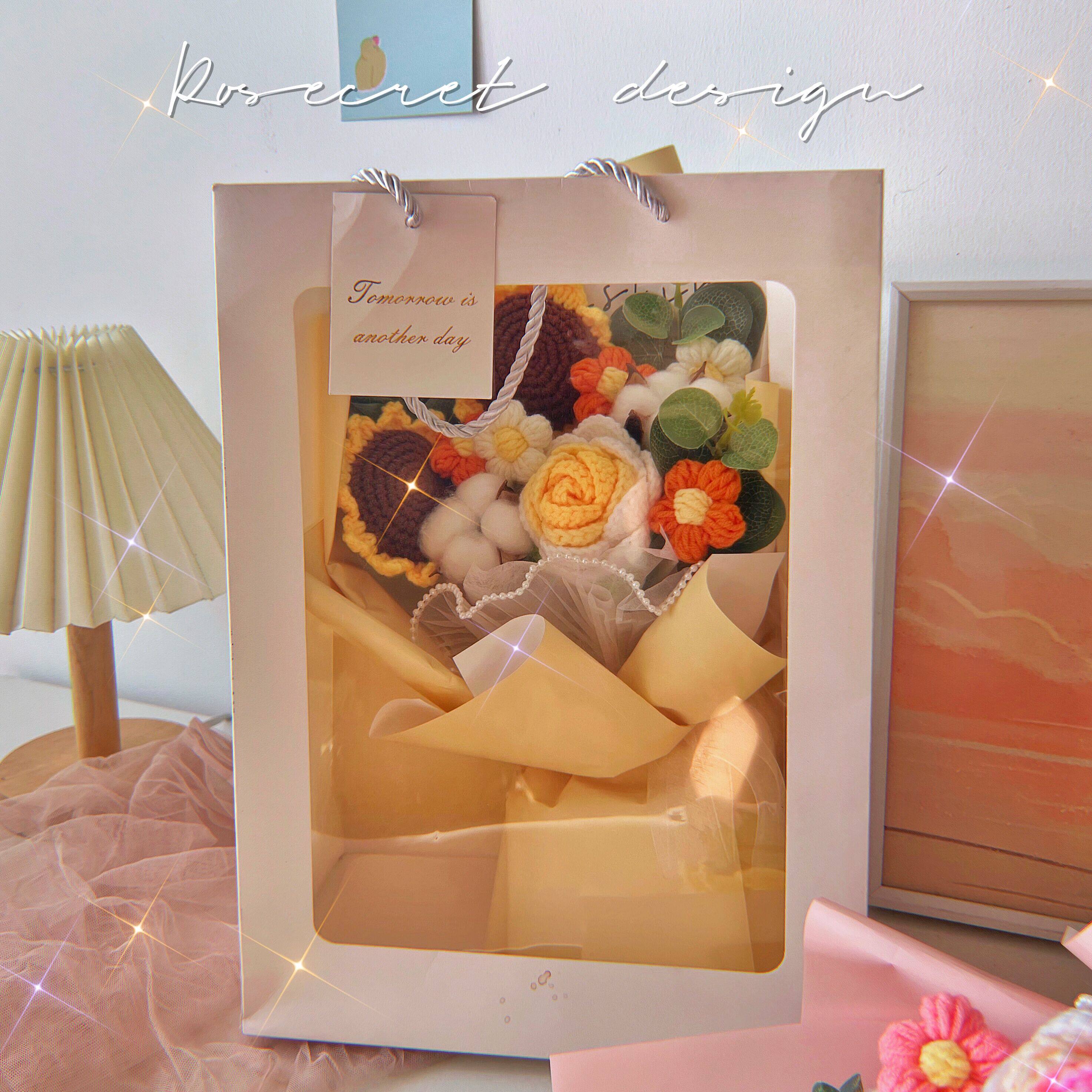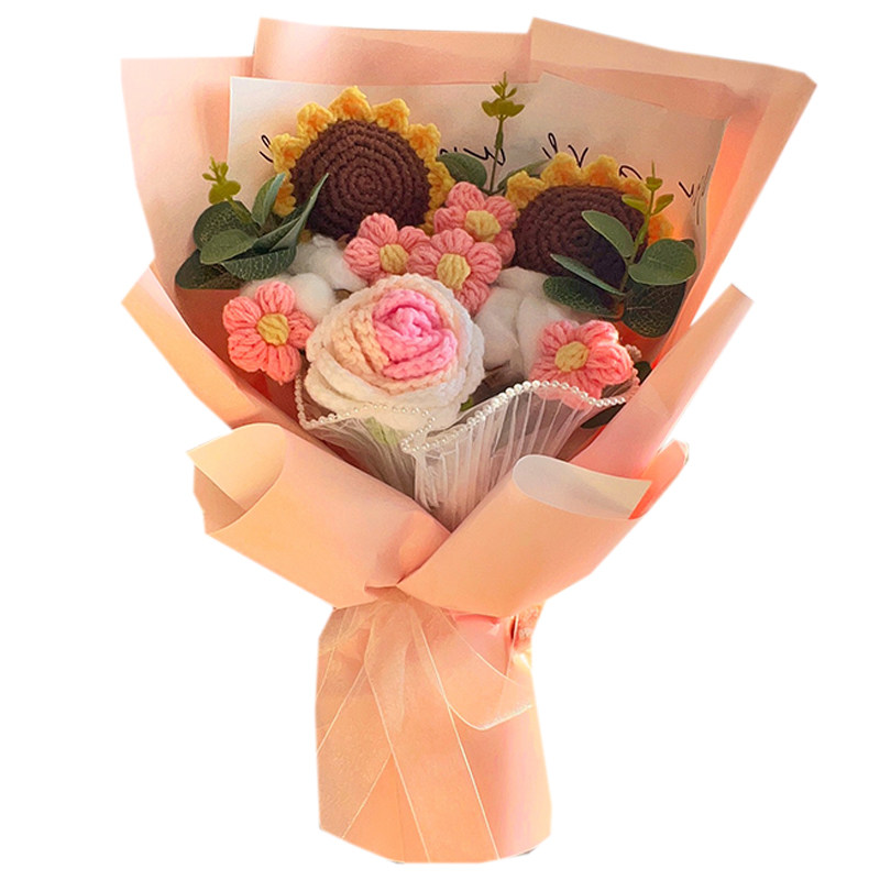 Шерстяная цветочная ручная розовая вязаная цветочная луча Отдельный подсолнечный подарок подарки поддельный моделирование цветов, чтобы дать людям фестиваль Qixi