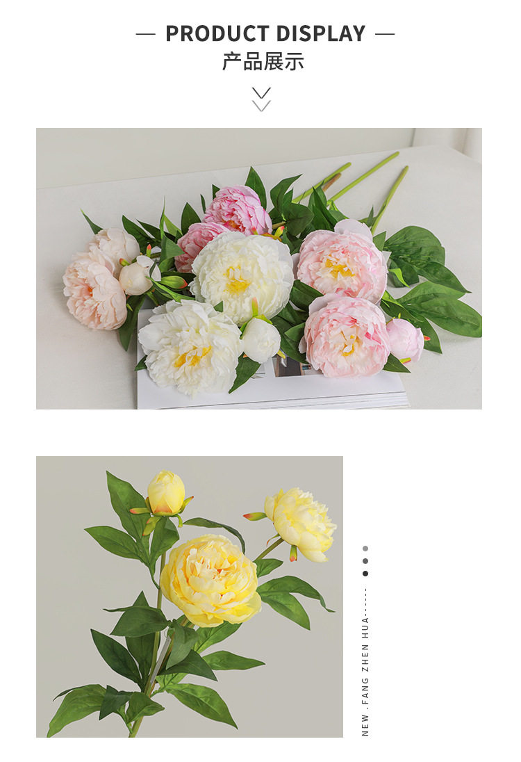 [Высоко -энд] Французский легкий роскошный 3 -головый пион -симулятор цветочные цветы.