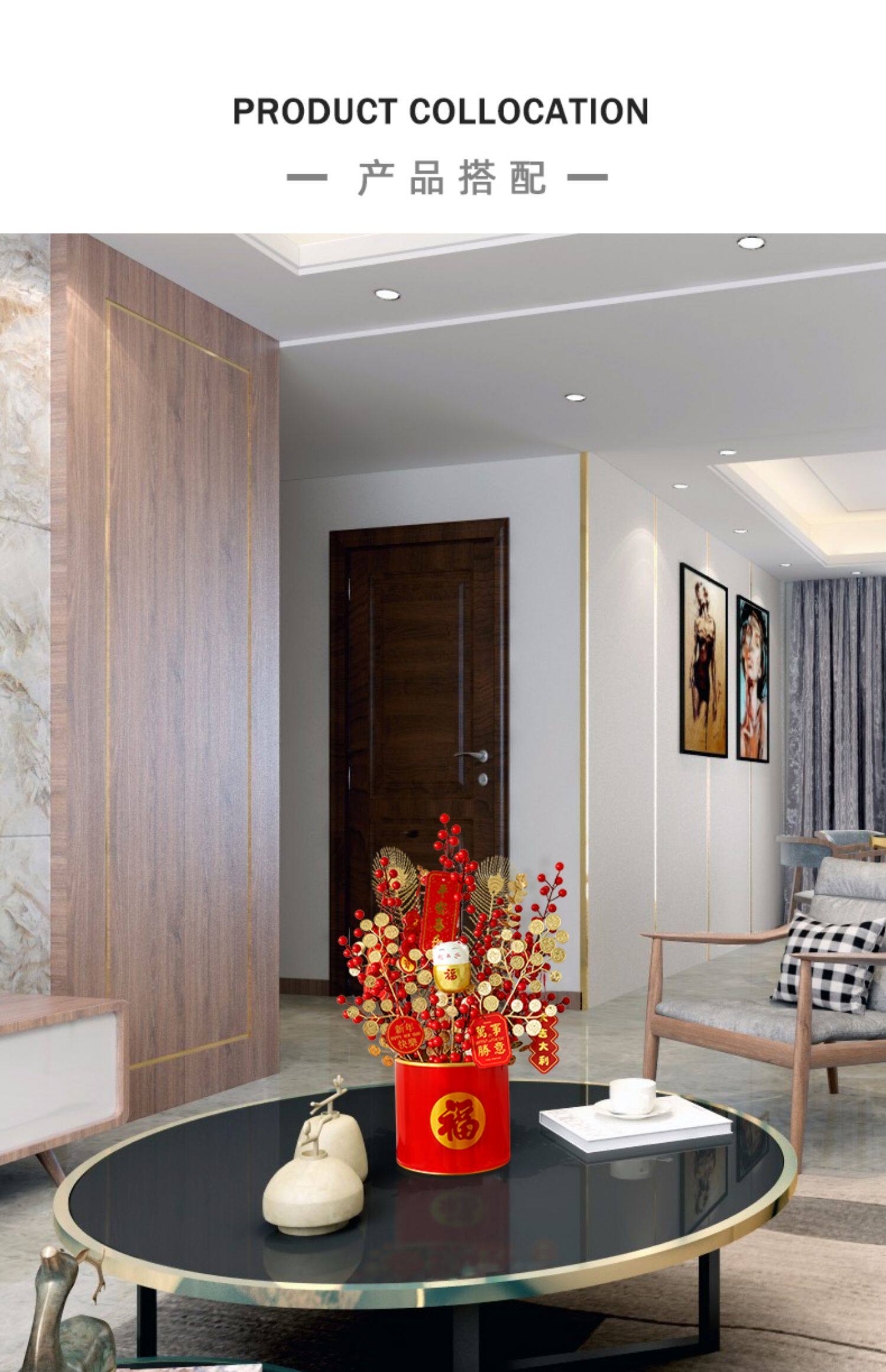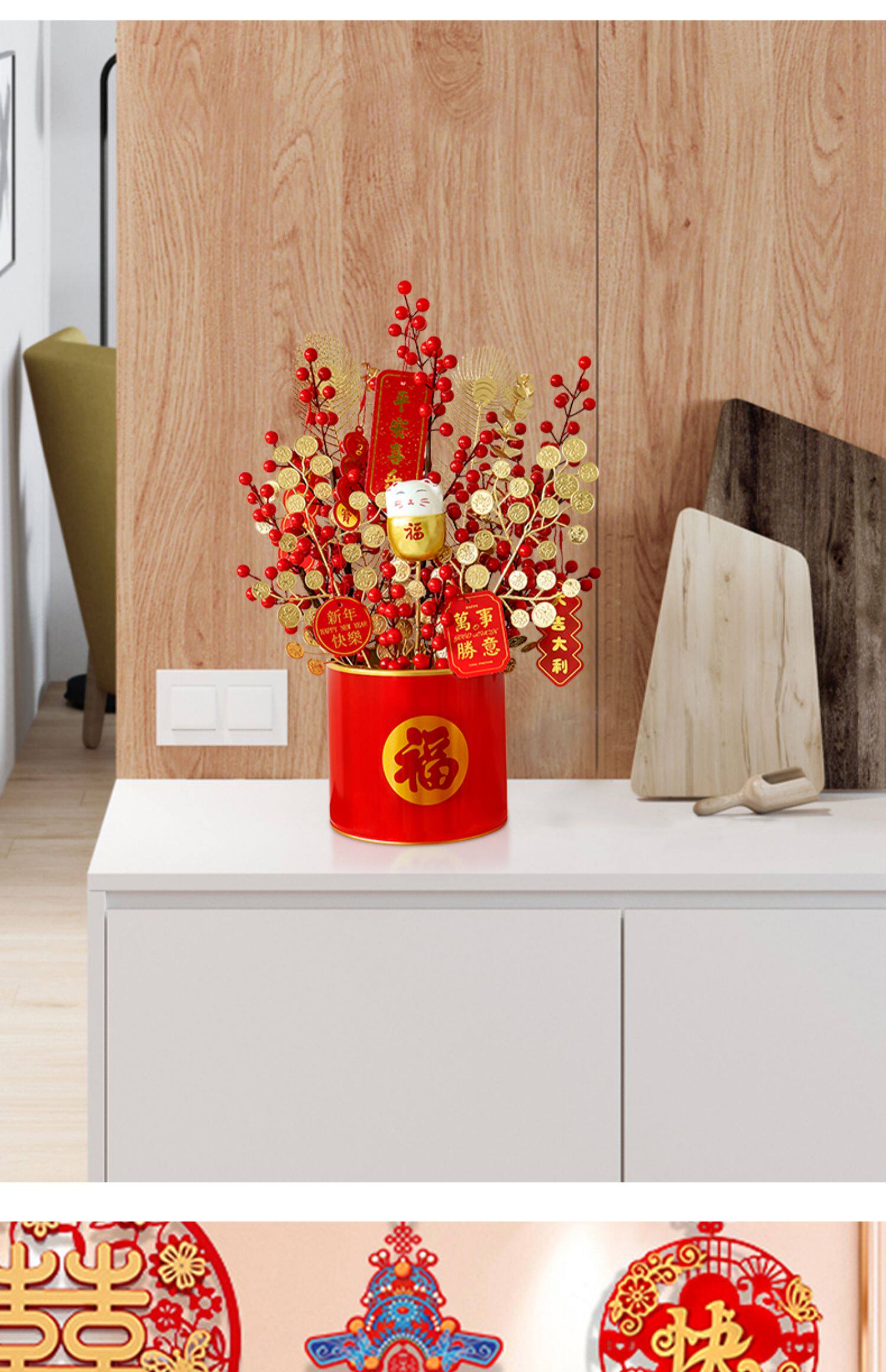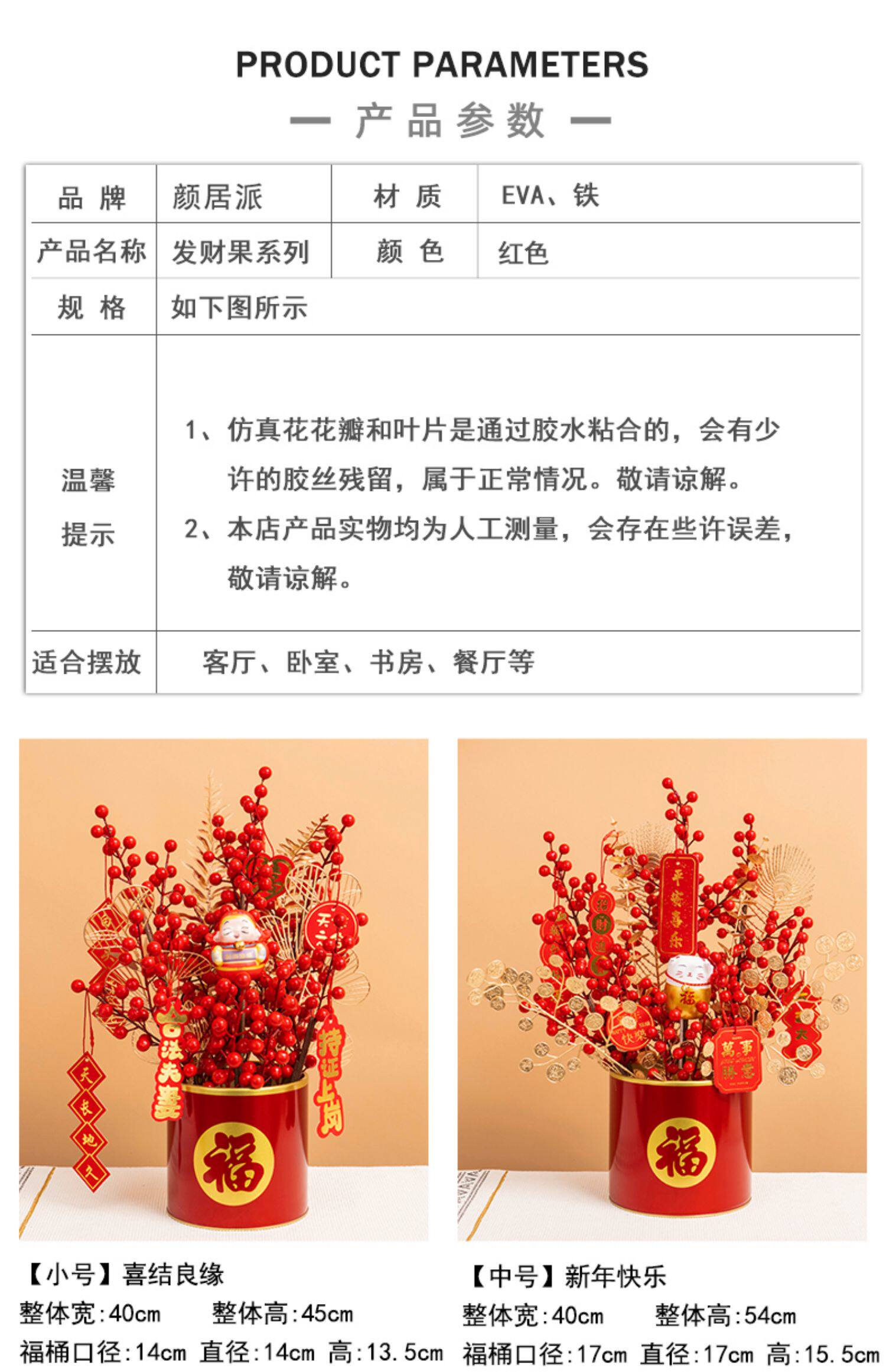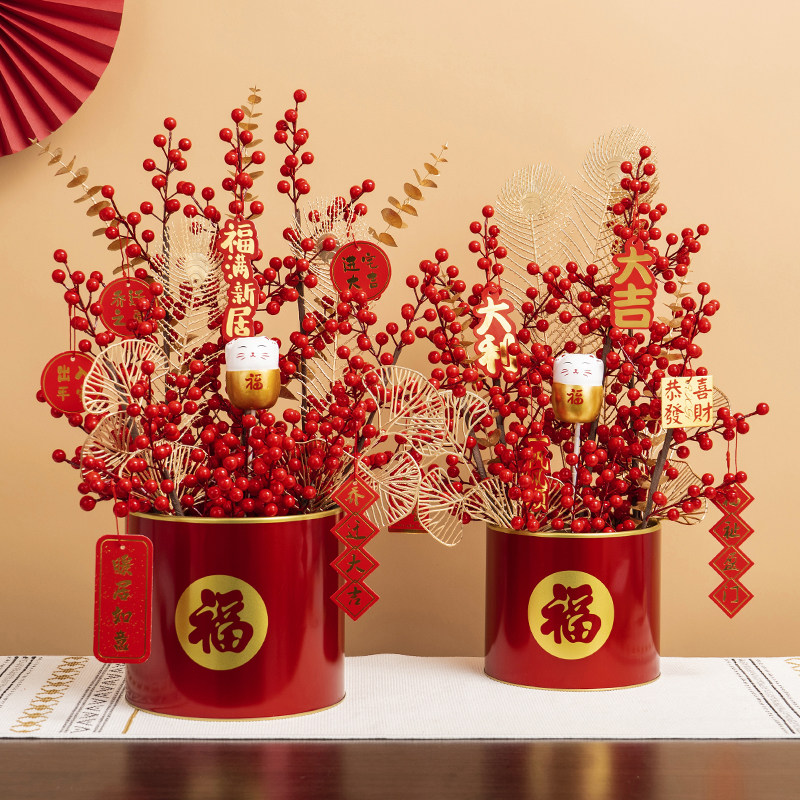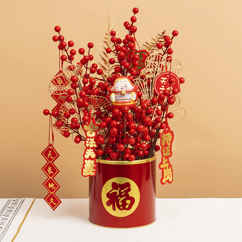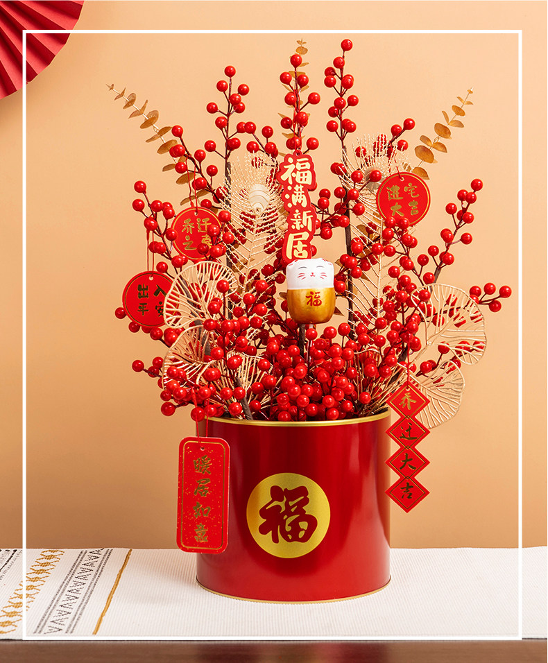 年宵 花 果 福桶 抱抱 桶 假 花 仿 真花 摆设 客厅 新年 装饰 花艺 摆件