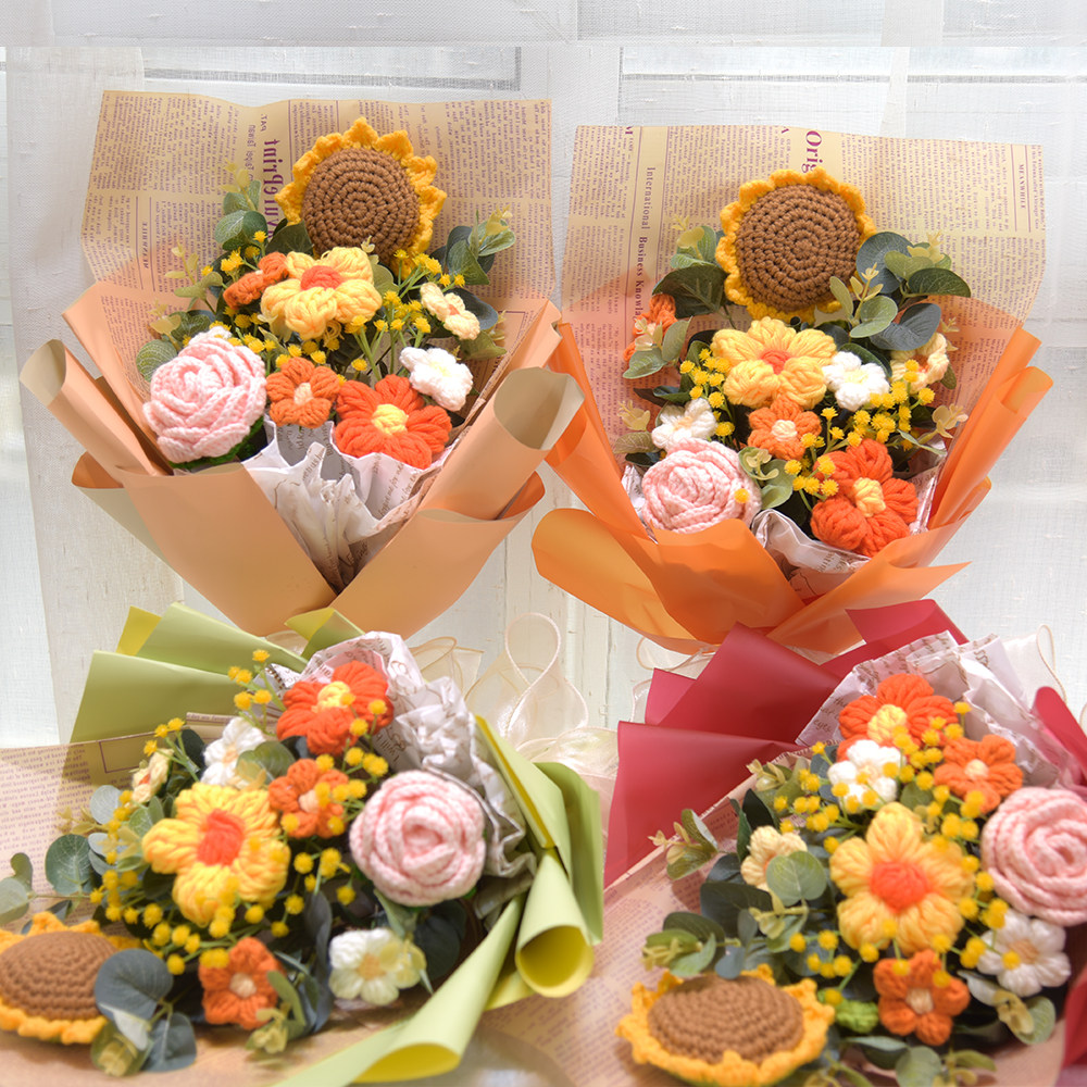 Рука -Недостаток шерстяного вязаного подсолнечного букета завершил день рождения день рождения, чтобы дать подруги подруги подруги в средней школе вступительный экзамен подарка