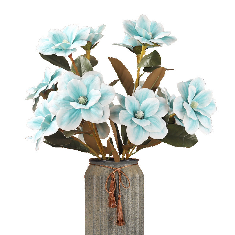 Китайский стиль синий симуляция цветочный домашний кофейный столик украшения с высоким содержанием jingya magnolia 3D -пленка поддельные цветы как цветочные цветы