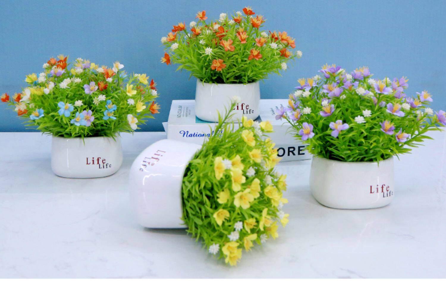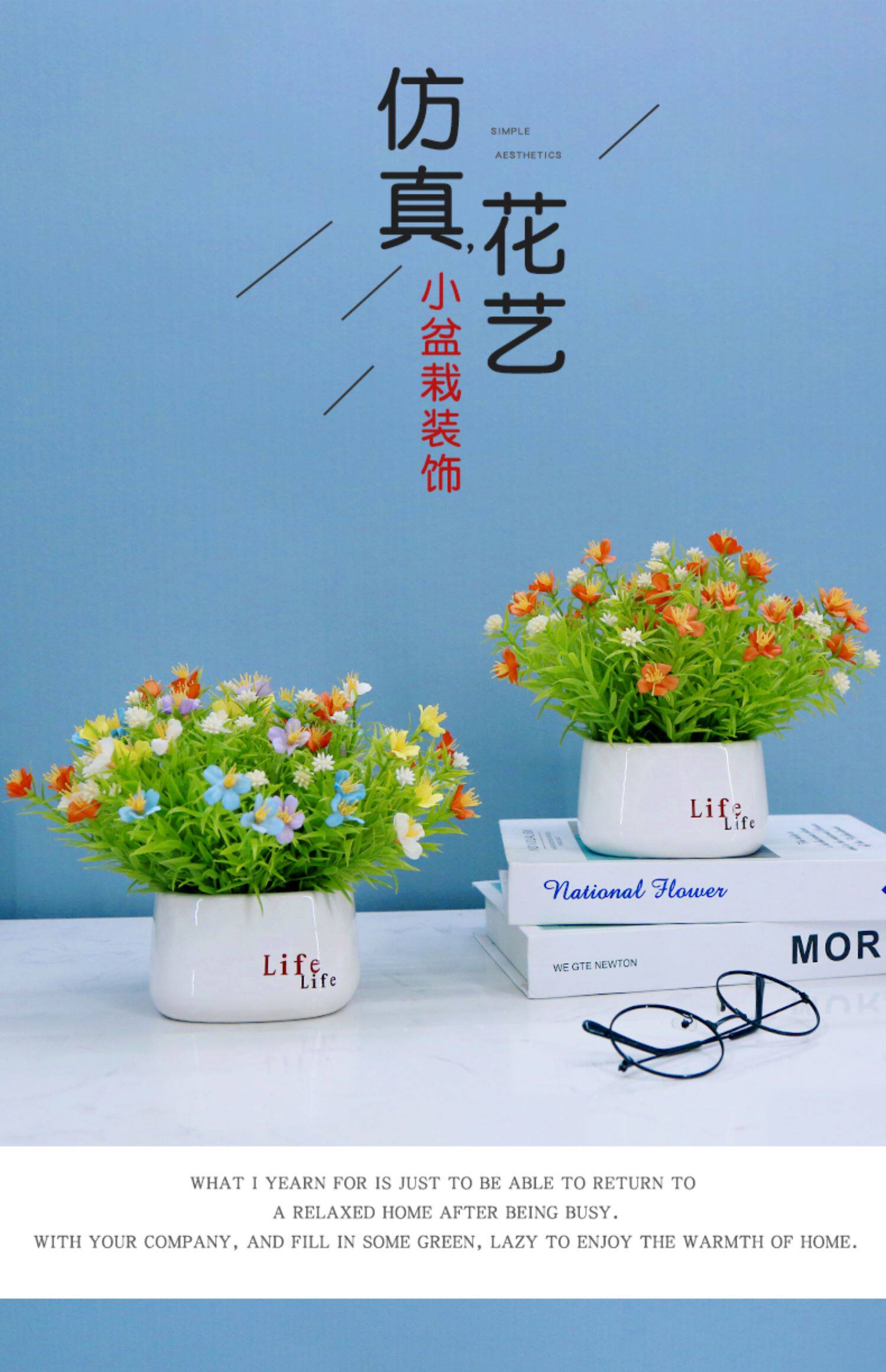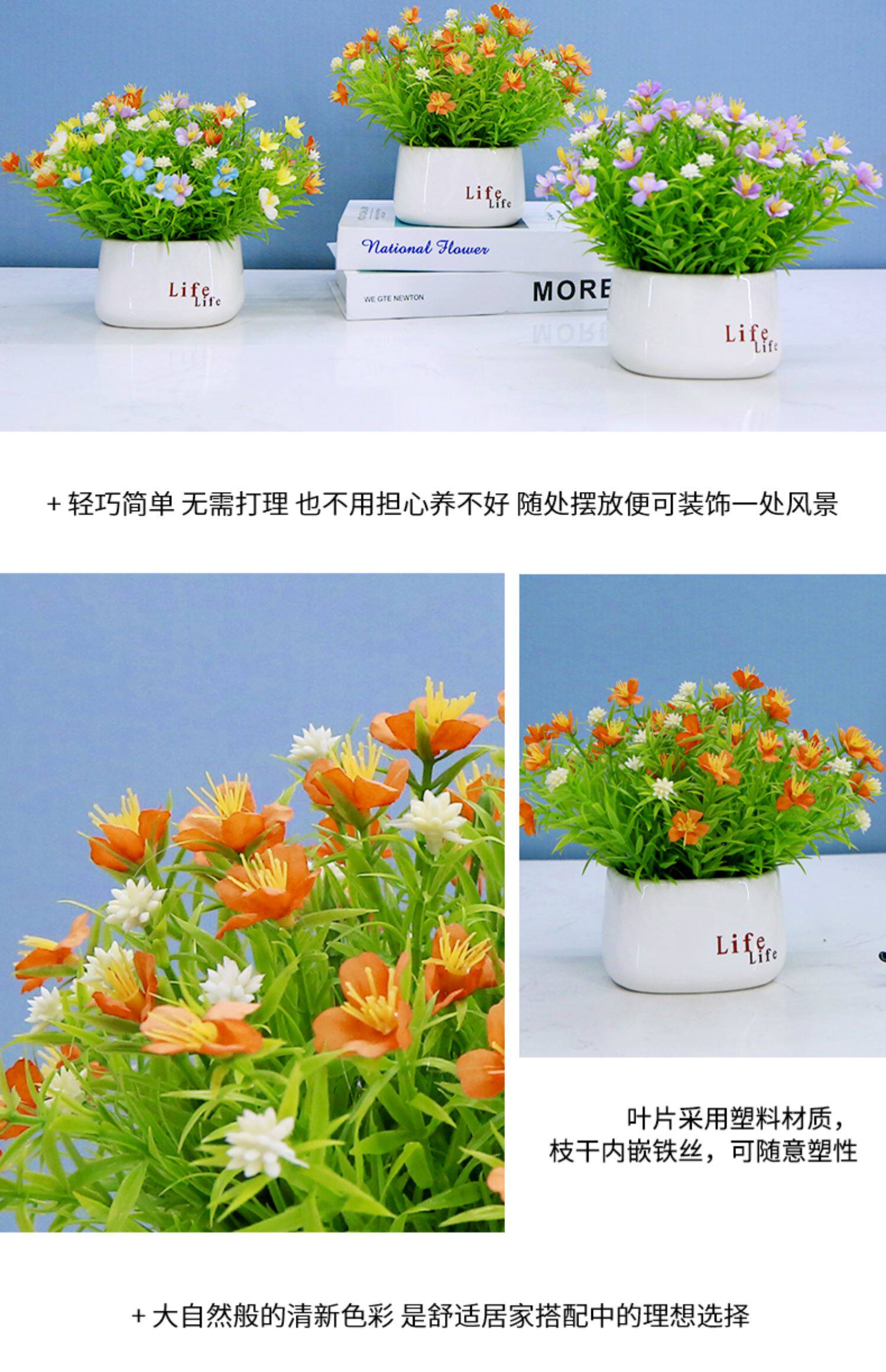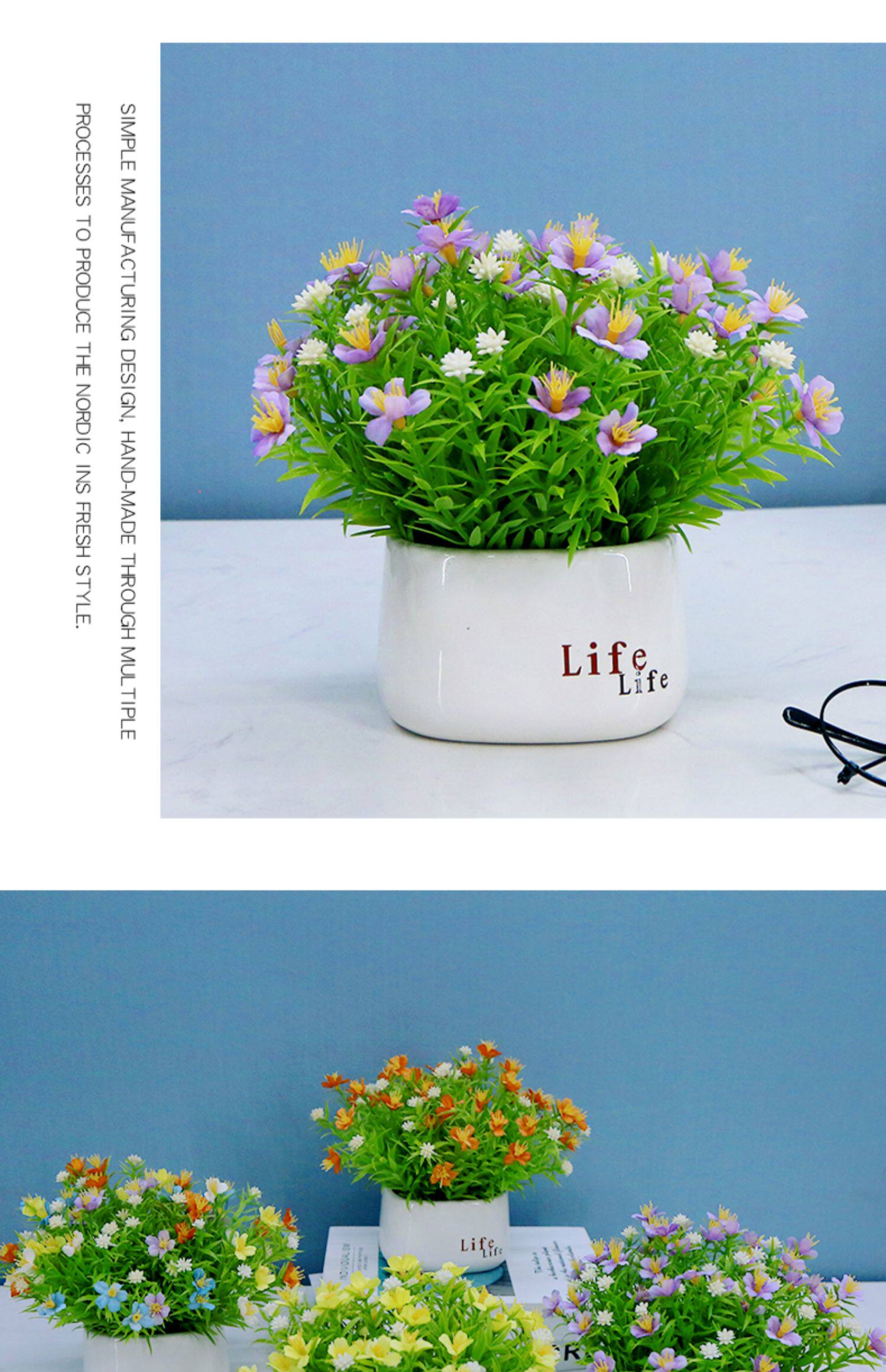 Имитация маленьких цветов, маленькие горшечные растения, искусственные цветы, керамические бутылки, предметы интерьера, маленькие свежие сушеные цветы, гостиная, офисные украшения, букеты.