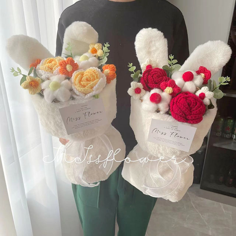 Симпатичные кроличьи уши плюшевые розы до подсолнечника. Готовые цветочные букет вечный арахис