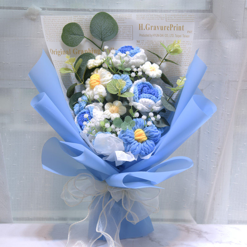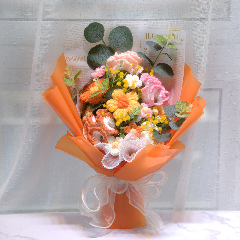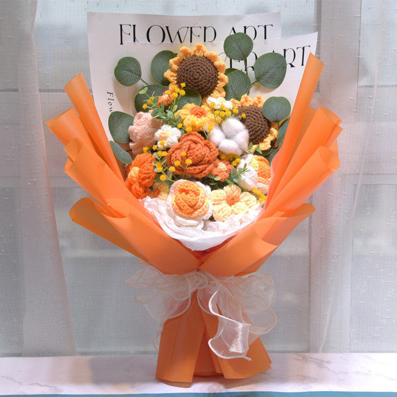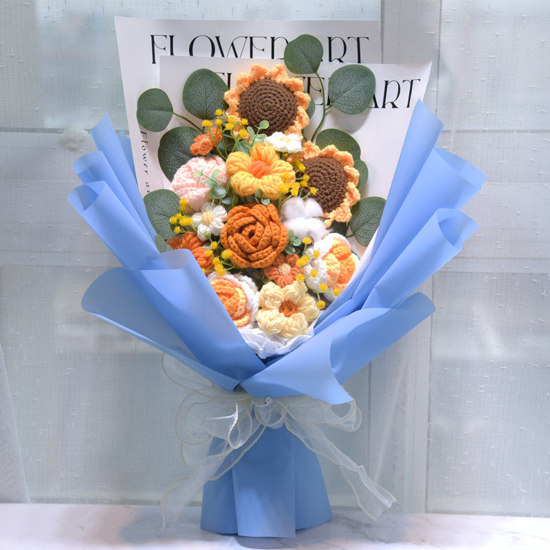 Шерстяные вязаные сплетенные букеты подсолнуха