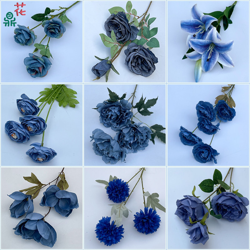 23 -Year Свадьба Тонкий синий цветочный искусство ландшафт цветочный композиция декоративное шелковое цветочное отель фотография приветственная дорога для цитирования фальшивых цветов
