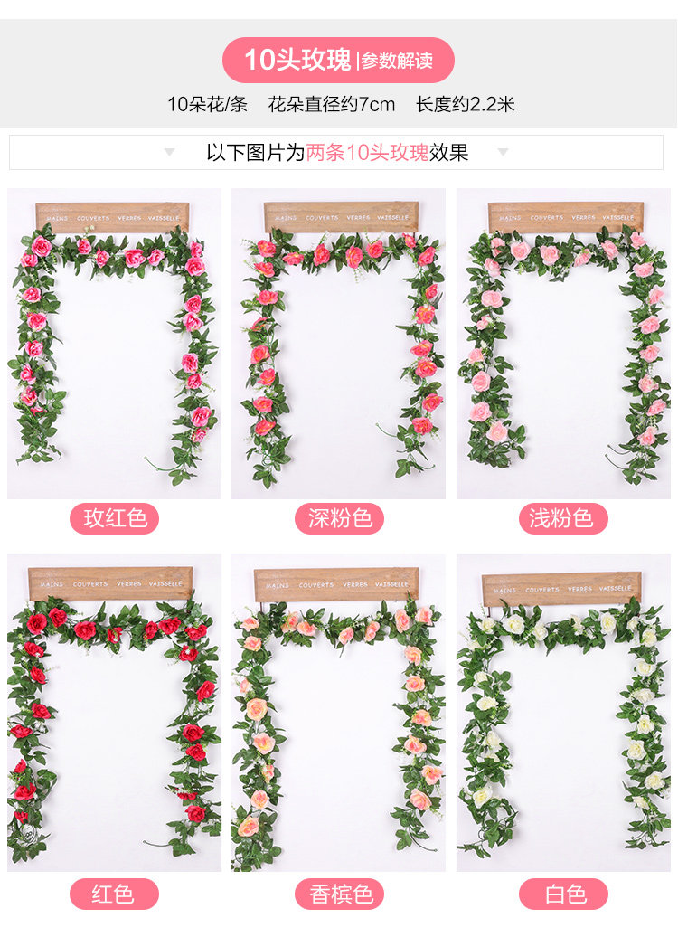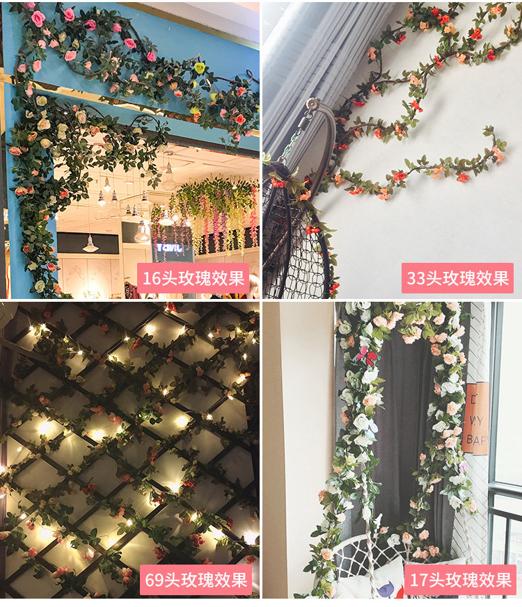 Имитация роз, искусственные цветы, виноградные лозы, настенные ковры, намоточные водопроводные трубы для кондиционирования воздуха, блокировка и украшение потолка гостиной пластиковыми растениями