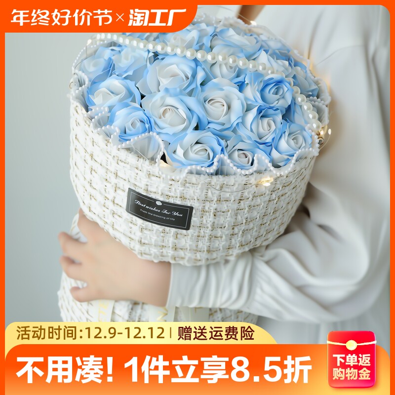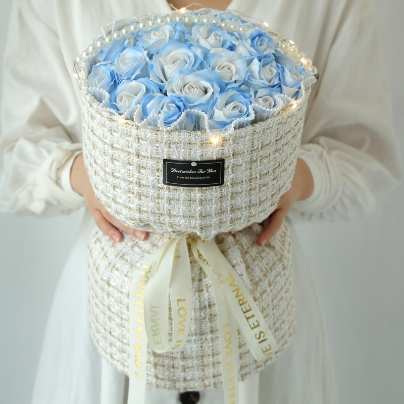 Небольшой благовонный букет ветра Сломан Ice Blue Simulation Rose Birthday Gird Diftauction, чтобы дать подругам вечно цветущий подарок подруги