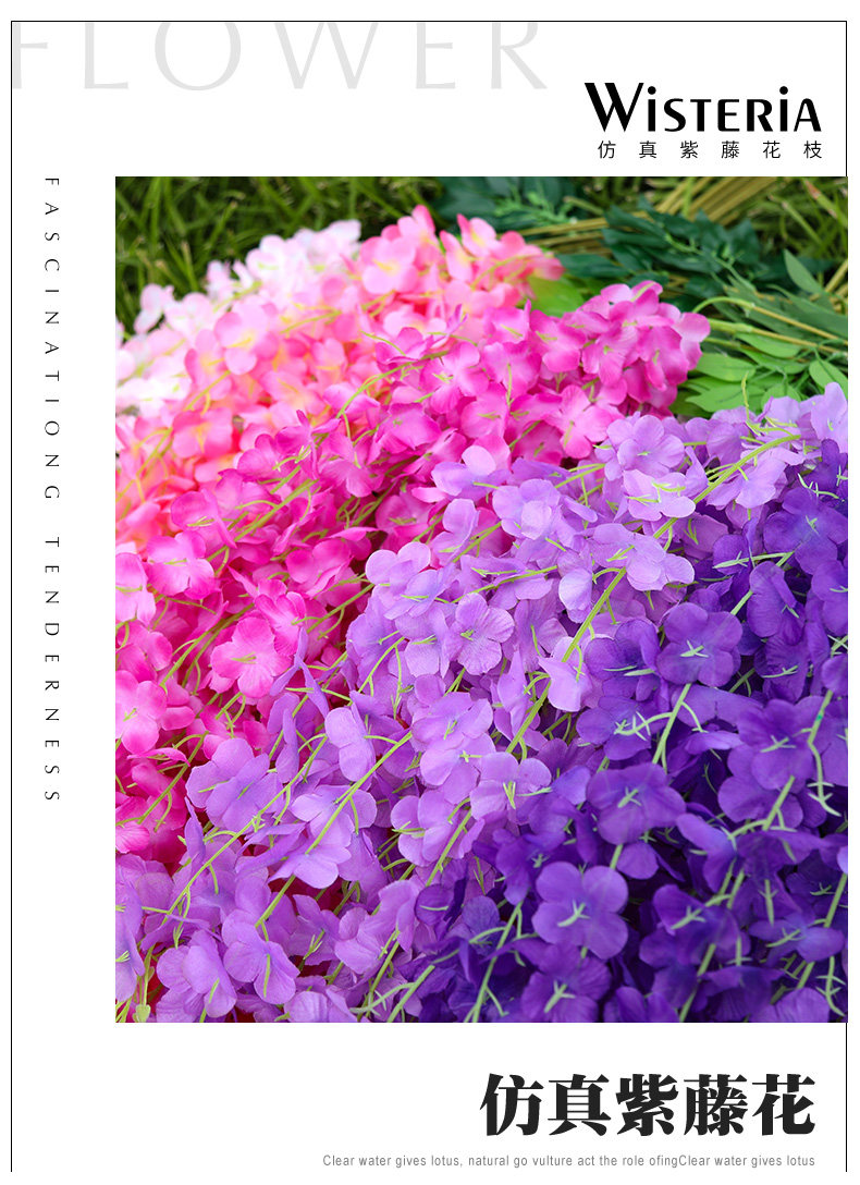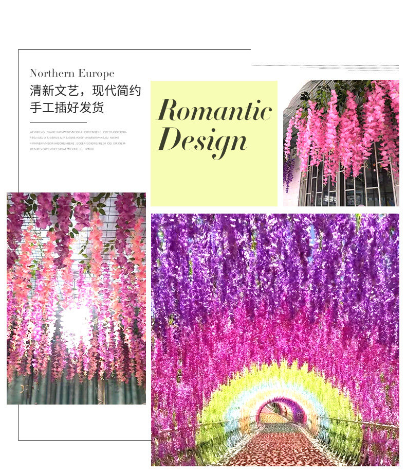 Моделирование глицерия цветочная галерея Потолочная отделка фальшивые фальшивые цветочные стойки в помещении и снаружи свадебных пластиковых виноградных виноград