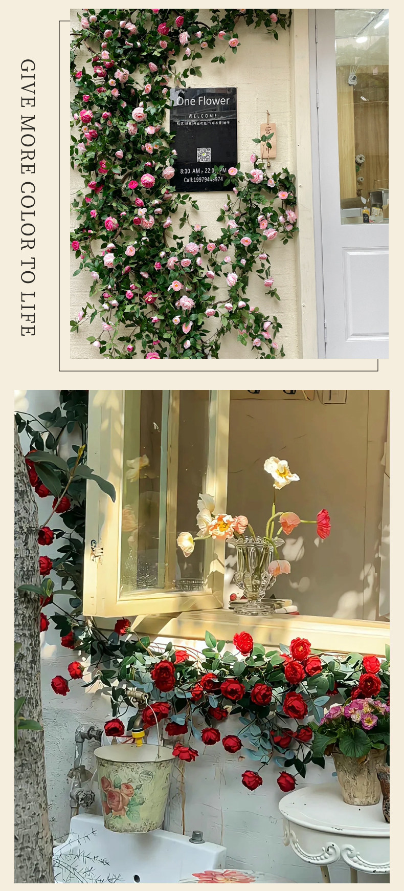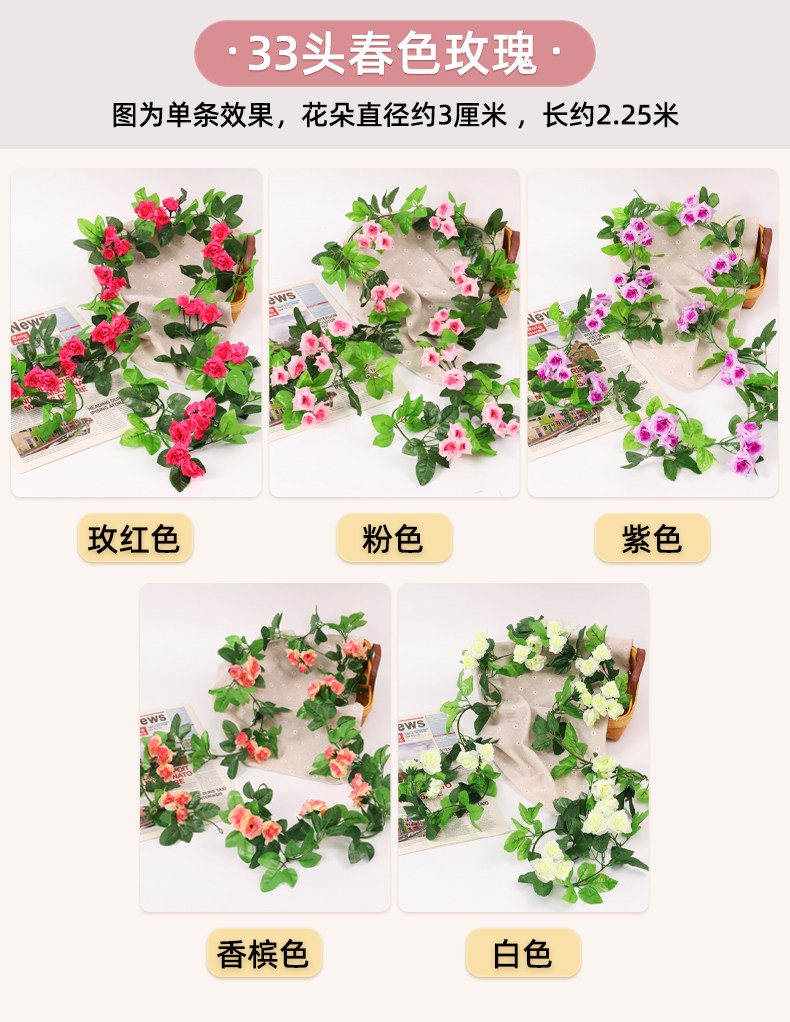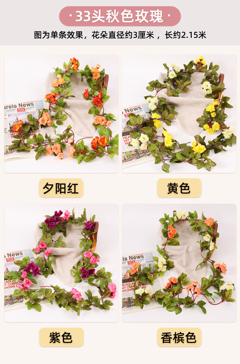 Имитация роз, искусственные цветы, виноградные лозы, настенные ковры, намоточные водопроводные трубы для кондиционирования воздуха, блокировка и украшение потолка гостиной пластиковыми растениями
