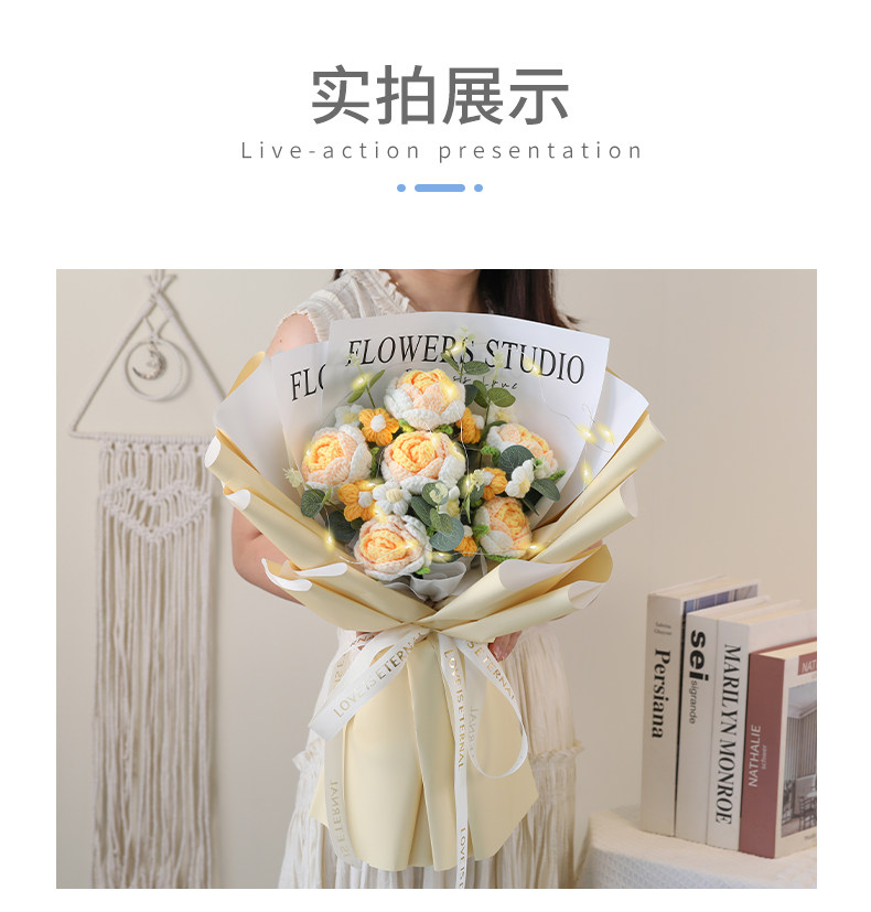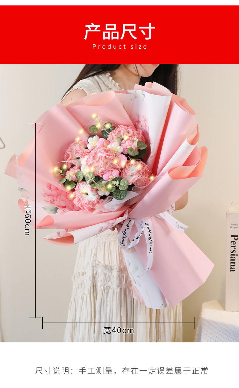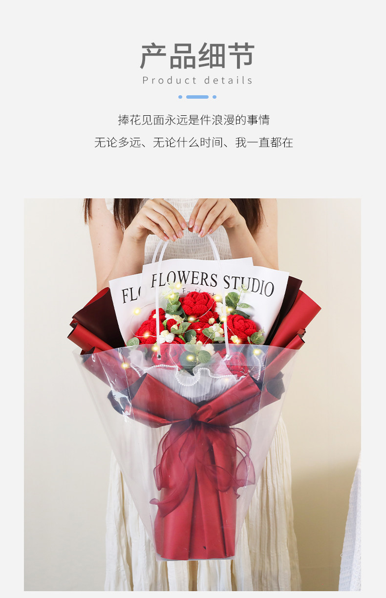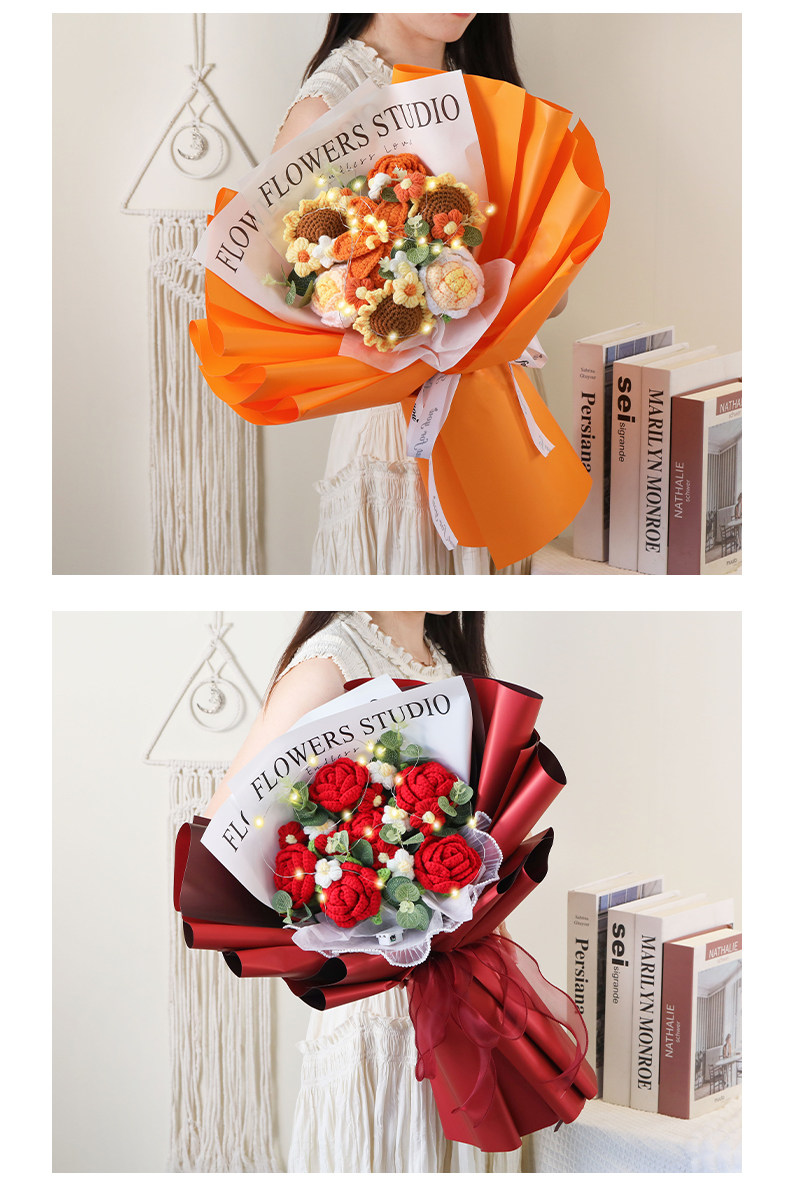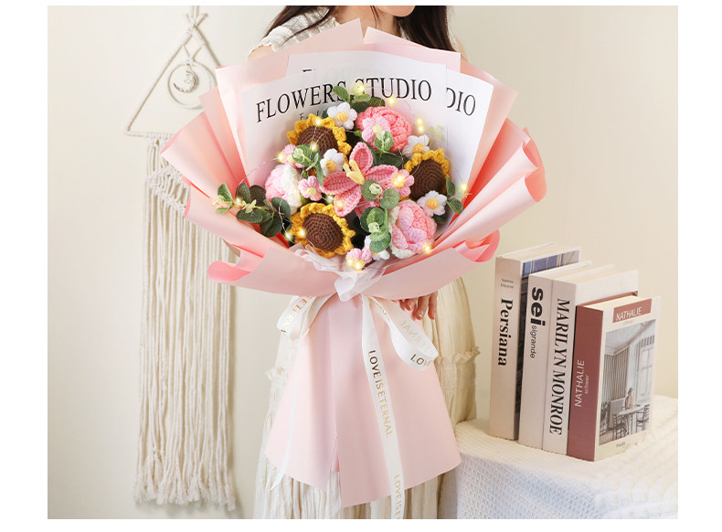 Искусственные цветы, вязаный вручную букет из шерсти, розы и подсолнухи, искусственные цветы, ручной букет высокого класса, китайский подарок на День святого Валентина