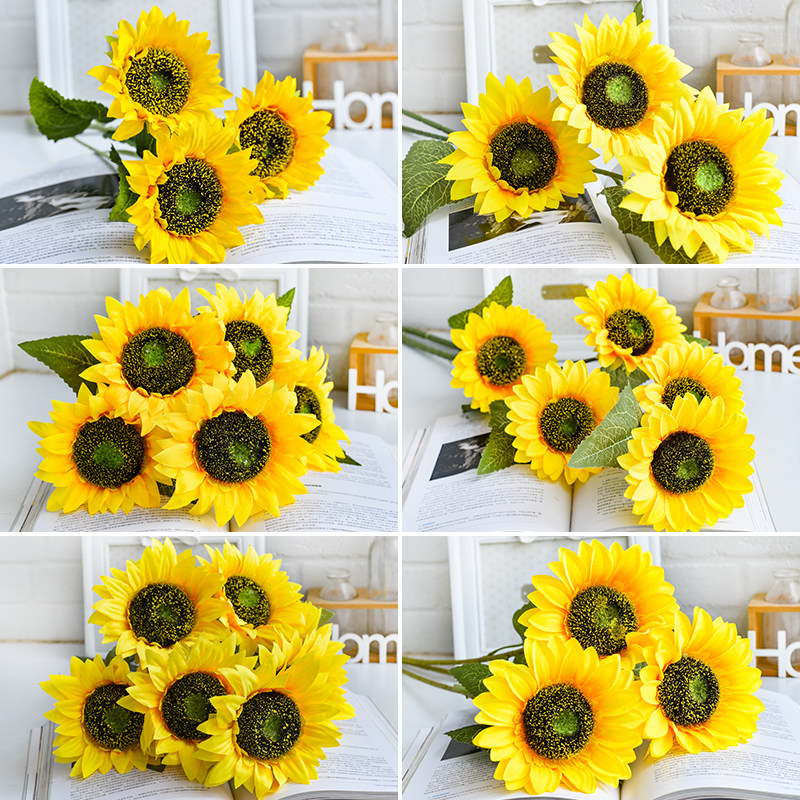 Подсолнух, искусственные цветочные украшения из подсолнечника для гостиной, украшения из сушеных цветов, цветы для обеденного стола, искусственные цветы, шелковые цветочные украшения, реквизит для фотосъемки