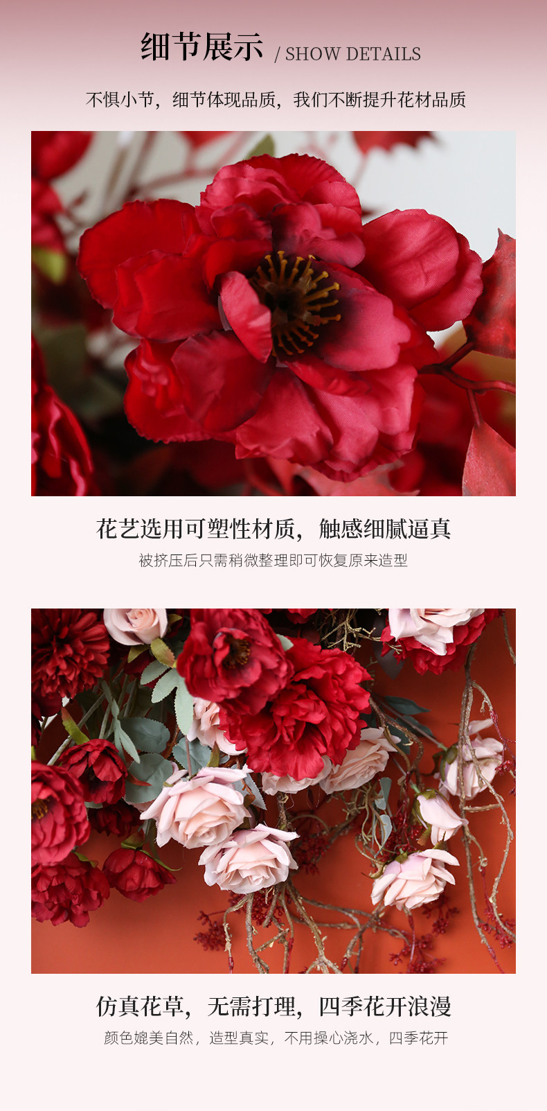 Свадебные декоративные полевые цветы Красные свадебные мероприятия фальшивые цветы китайский свадебный банкет сцены сцены